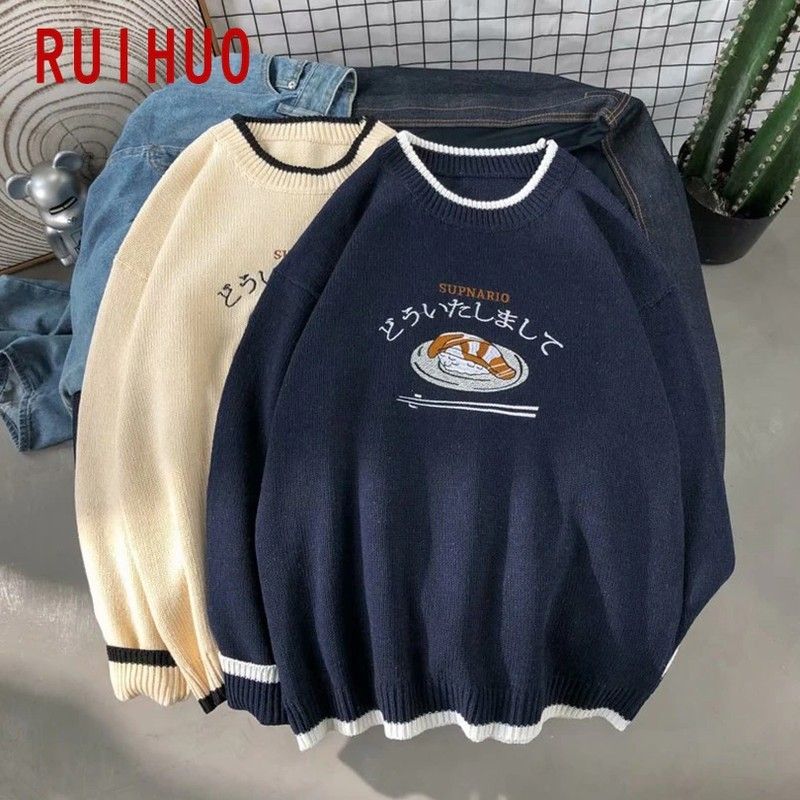 RUIHUO-하라주쿠 니트 스웨터, 남성 의류, 겨울 풀오버, 남성 스웨터 패션, 하라주쿠 의류, 힙합 2XL 2021 년 신제품