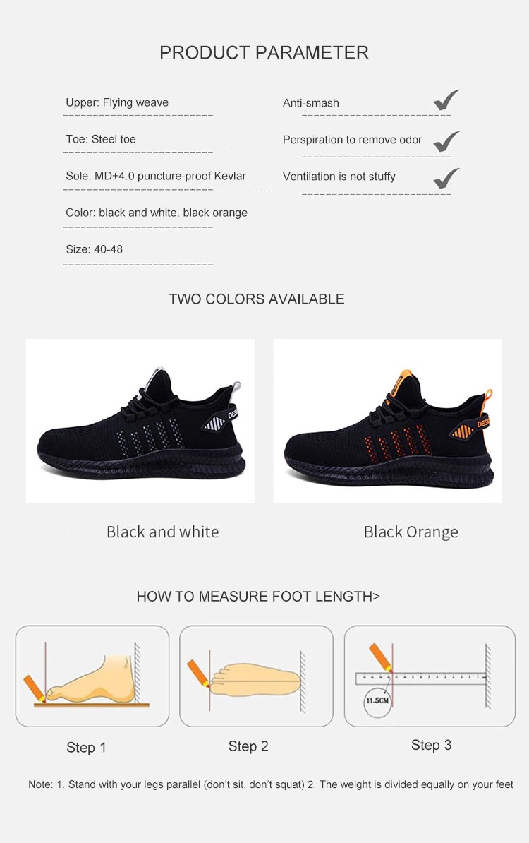 불멸의 안전 작업 신발 남자/여자 패션 Punctureproof 스틸 발가락 신발 경량 통기성 미끄럼 방지 신발 플러스 크기