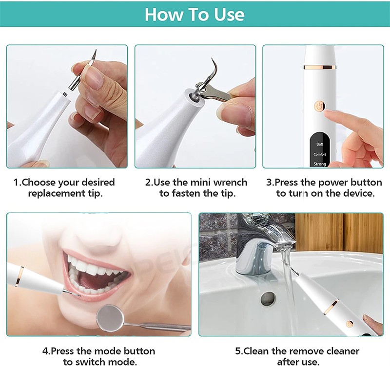 울트라 소닉 치아 스케일러, 치석 얼룩 치아 치석 제거기, 전기 음파 치아 플라크 클리너, 치과 돌 제거
