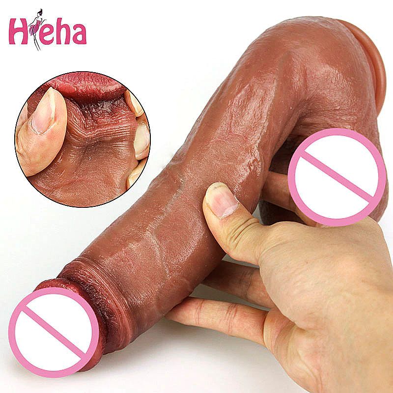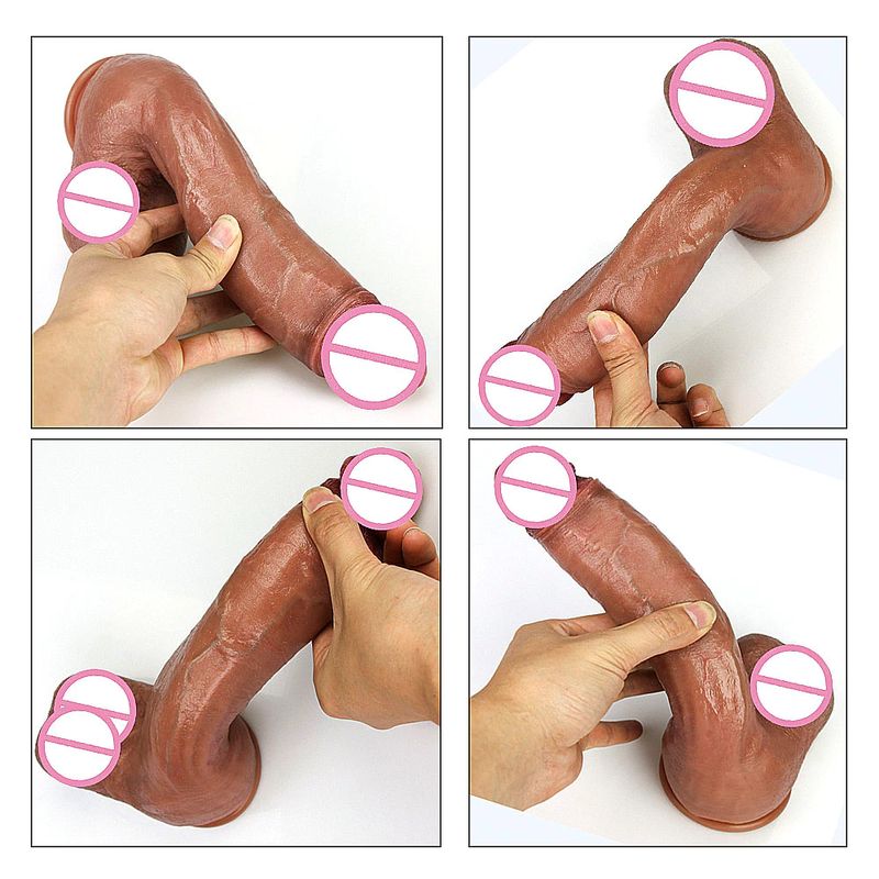 피부 느낌 현실적인 남근 소프트 섹시한 거대한 딜도 라구 딜도 여성 자위대 더블 레이어 실리콘 흡입 컵 딜도 여성을위한 빅 딕