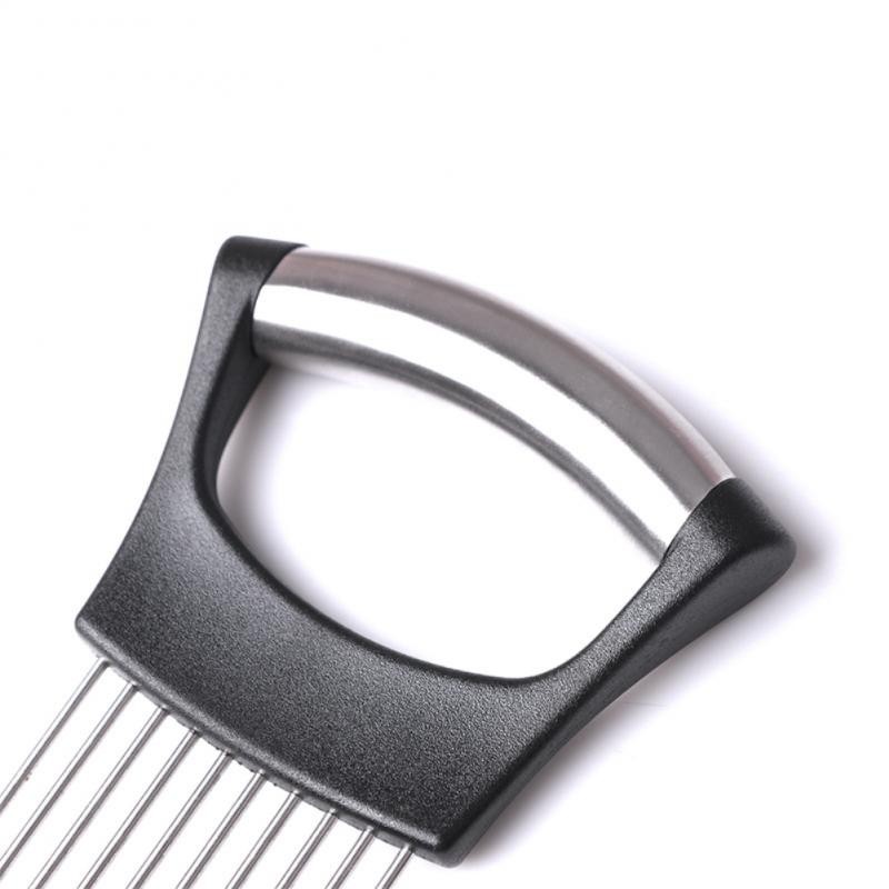 이 편리한 가제트는 양파를 담을 수있을뿐만 아니라 (더 이상 손 냄새 나지 않음) 칼도 완벽하게 슬라이스를 만들도록 안내합니다. 양파를 만지고 싶지 않다면이 가제트는 훌륭한 해결책이 될 것입니다.