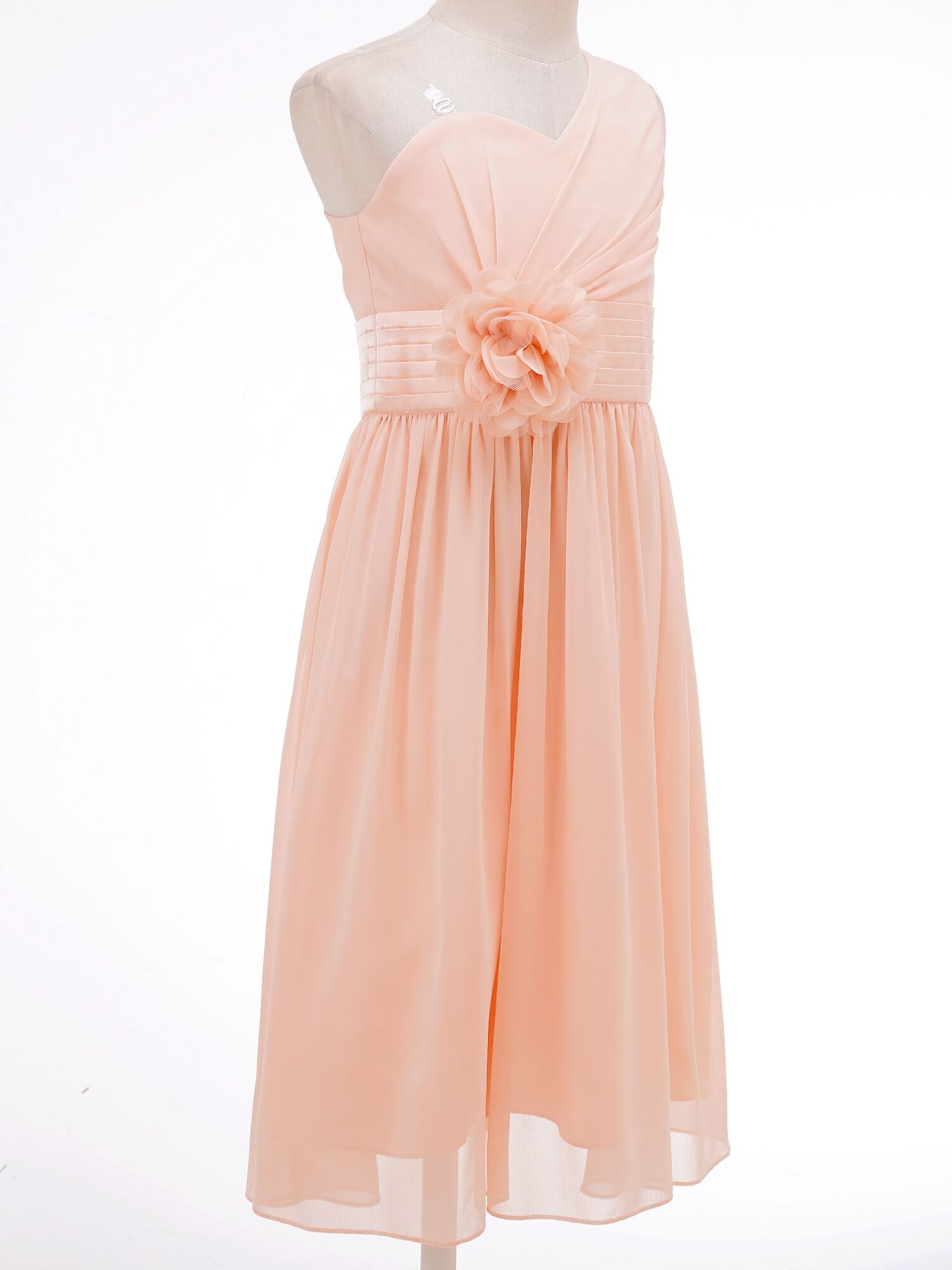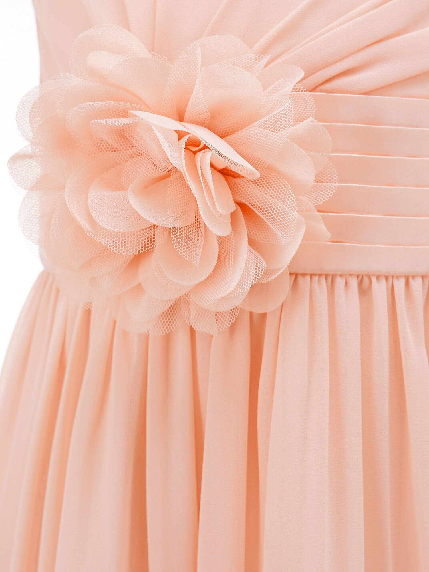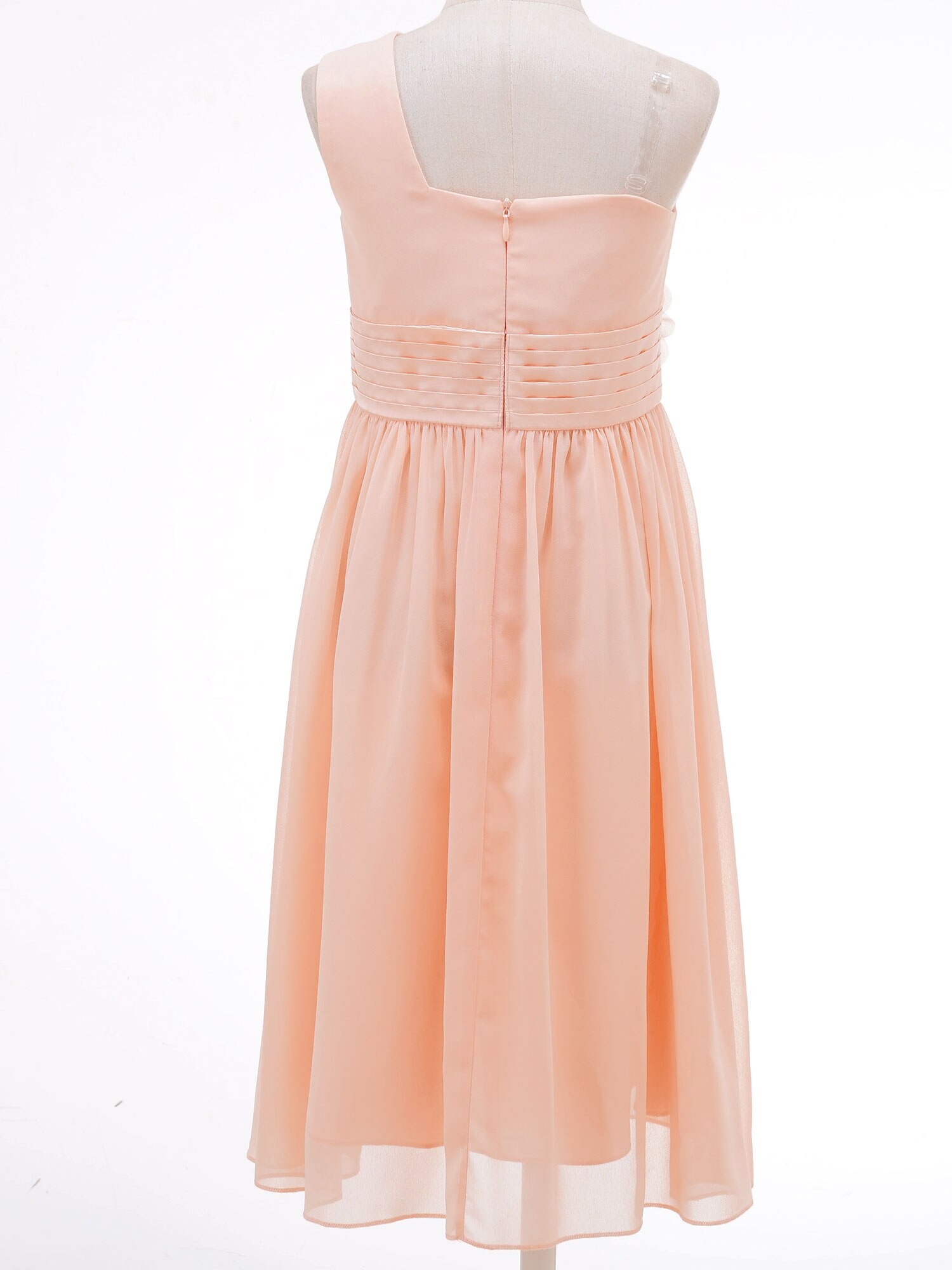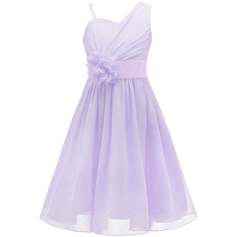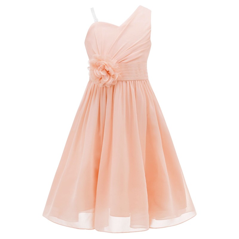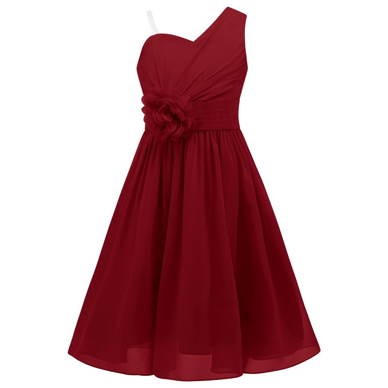 Irls-파티 드레스 3D 플라워 원 숄더 주니어 신부 들러리 드레스, 결혼식 저녁 첫 영성체 주름 쉬폰 드레스