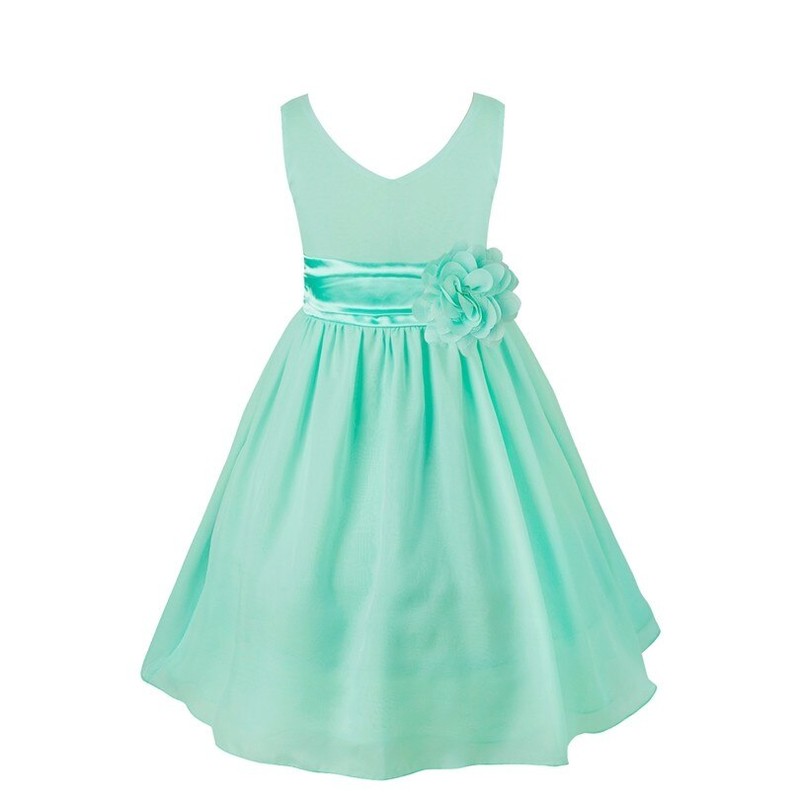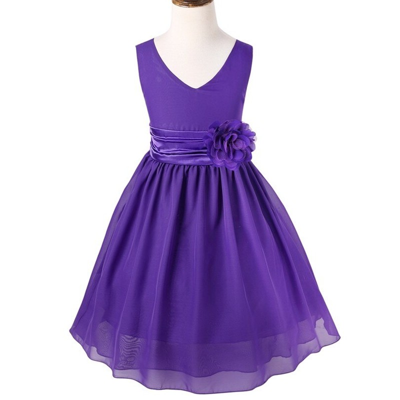 화려한 아이 소녀의 민소매 쉬폰 파티 드레스.