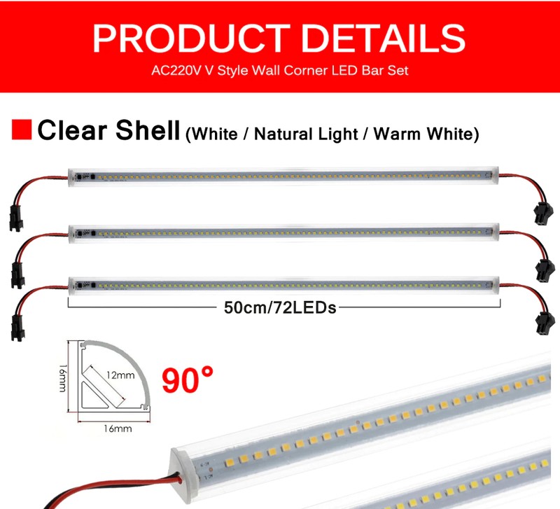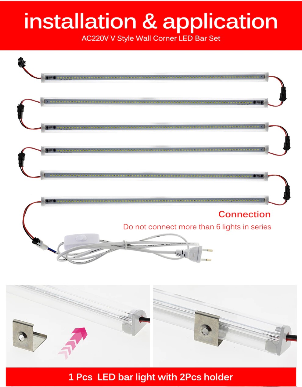 V Shaped LED Bar Light 220V 50cm 72LEDs