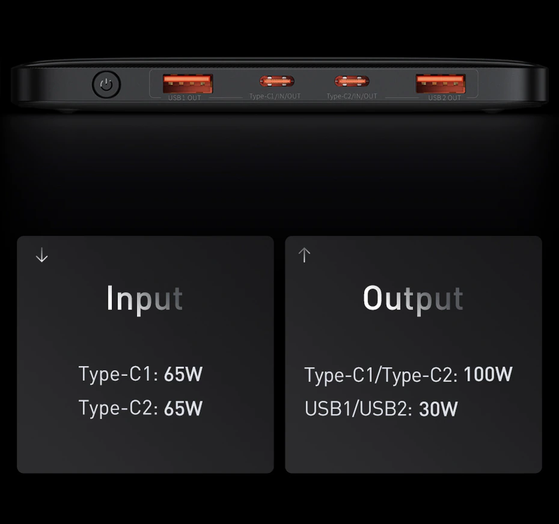 유형 C 1 + 유형 C2 출력: 65W + 30W