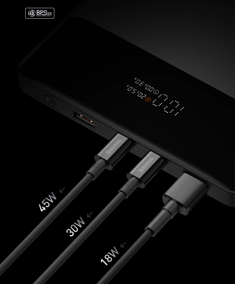 USB 2 출력: 4.5V/5A, 5V/4.5A, 5V/3A, 9V/3A, 12V/2.5A 30W