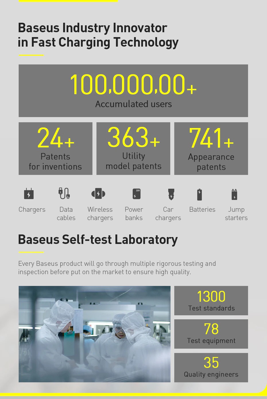 Baseus는 우수성을 추구하는 열정과 비전을 가진 젊은 회사입니다. Baseus는 시간과 에너지를 하루 동안 전원을 공급하는 데 도움이되는 최고의 제품을 만듭니다.