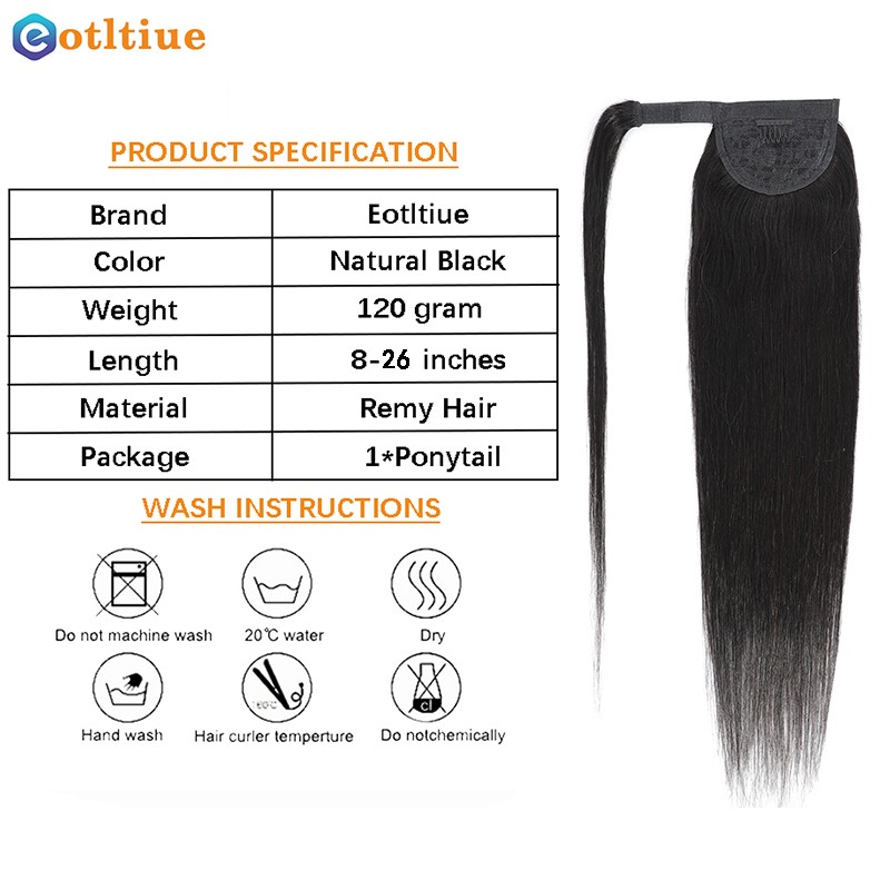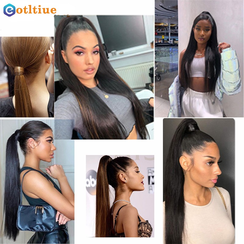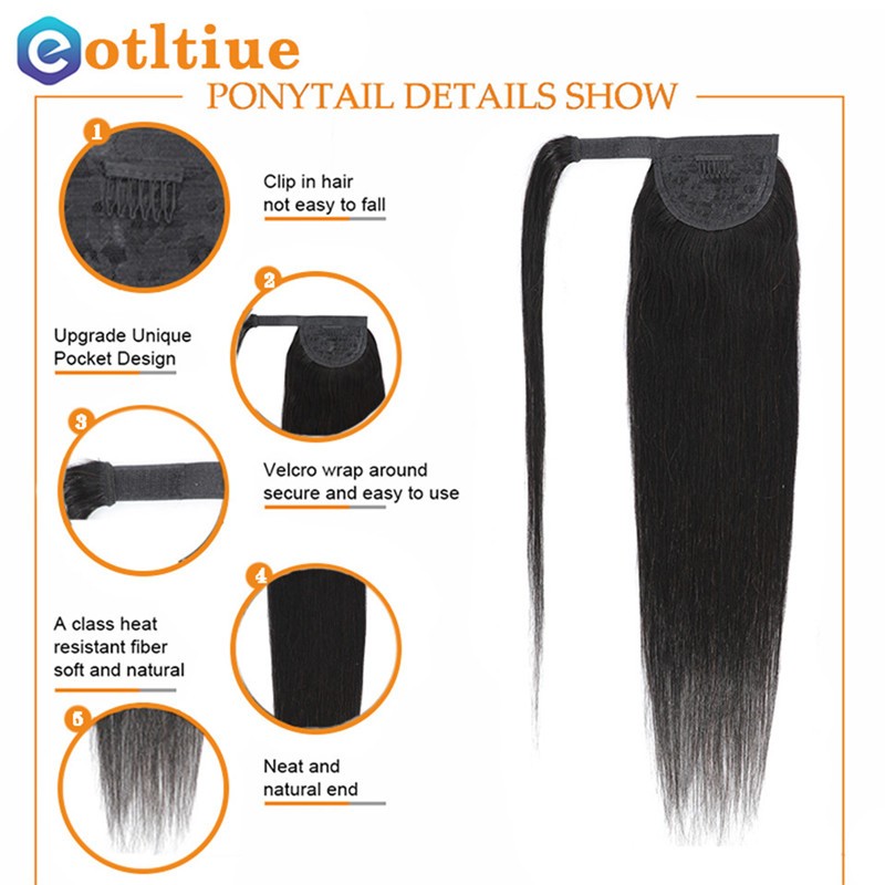 긴 스트레이트 포니 테일 인간 헤어 레미 헤어 익스텐션 랩 말레이시아 헤어 익스텐션 클립 인 자연 컬러 헤어 피스