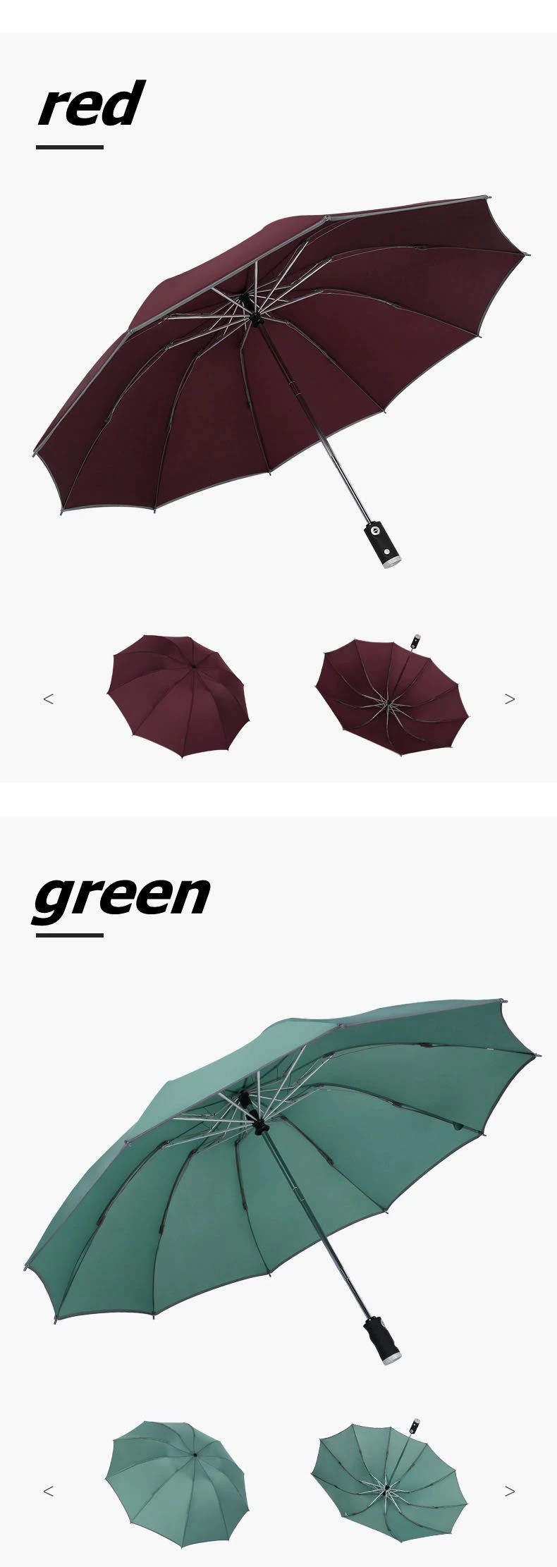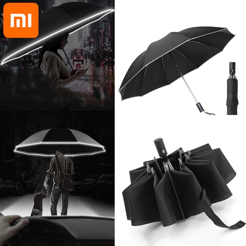 샤오미 10 Ribs 자동 비 자동 우산 반사 역방향 Led 라이트 우산 세 접는 거꾸로 여행