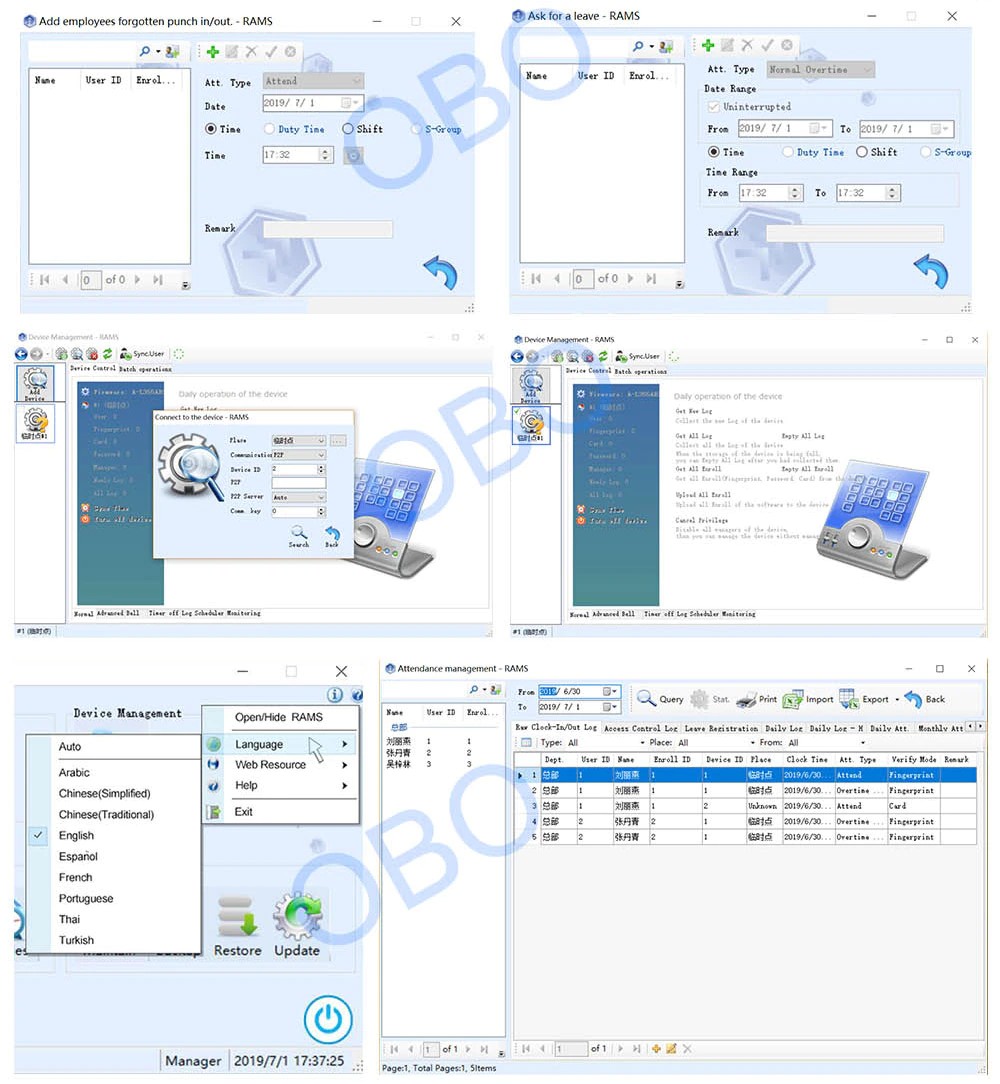 2. 이 장치는 TCP/IP/Wifi 통신 네트워크를 통해 모든 컴퓨터에 연결을 지원하고, 컴퓨터를 한 번에 클릭하여 출석 보고서 데이터를 다운로드합니다.