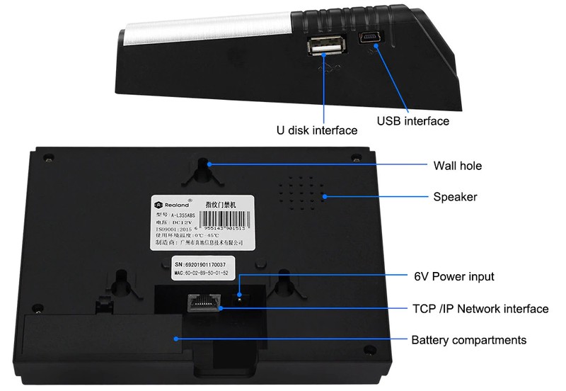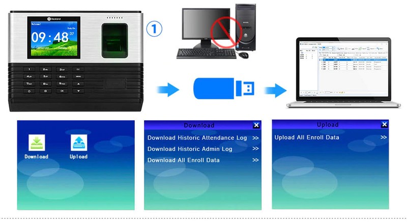 1. 이 장치는 네트워킹 없이 출석에 체크인 할 수 있도록 지원합니다. 네트워크를 배선하고 연결할 필요가 없습니다. 출석 보고서 데이터를 다운로드하고 업로드하기 위해 U-disk 사용 지원. (U 디스크 제외)