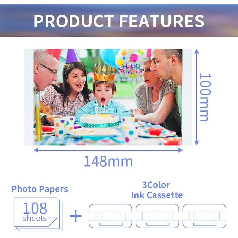 Package Quantity: 3 Color Ink Cassette /108 Sheets Photo Paper
