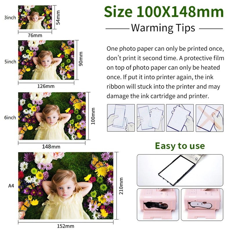 -Please make sure to use the correct combination of paper,paper cassette and ink cassette.The paper ,paper box, ink box must be 6 inches .