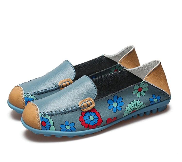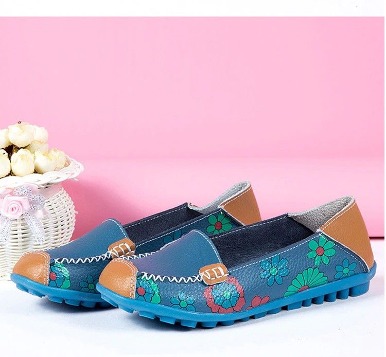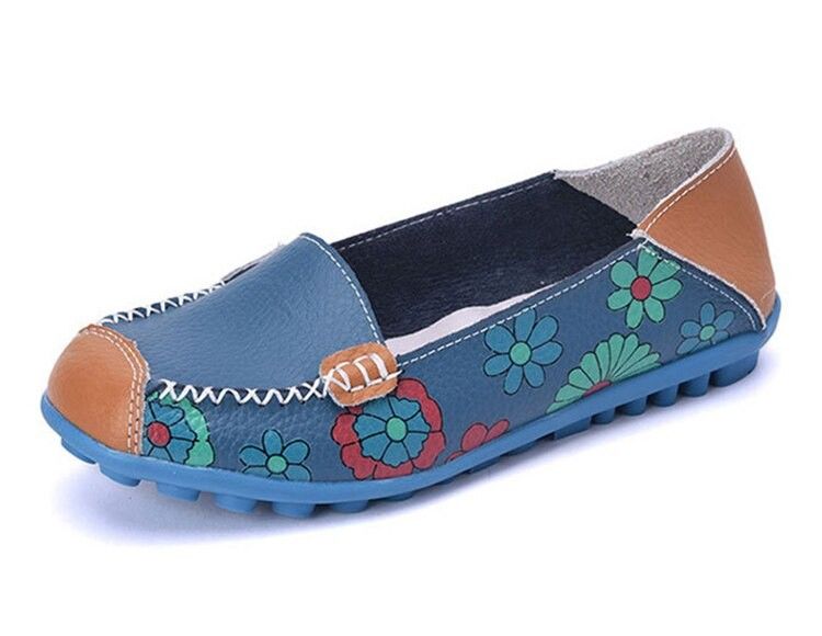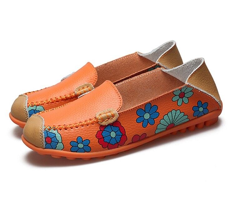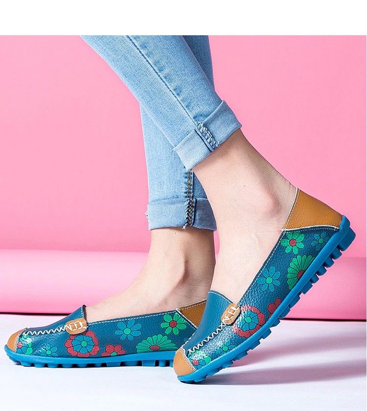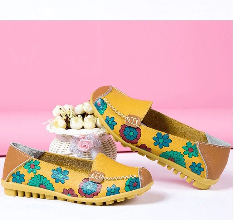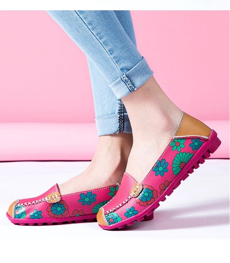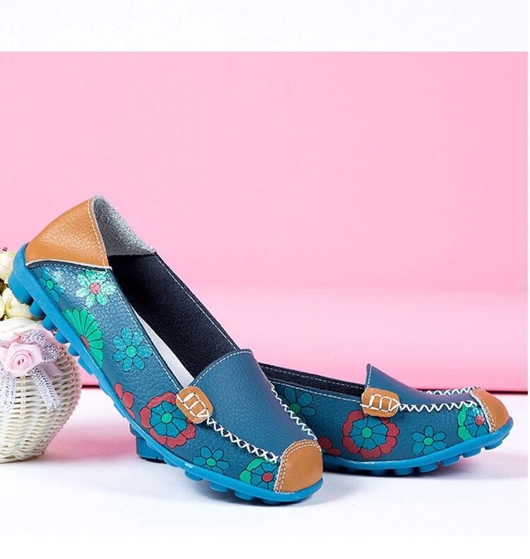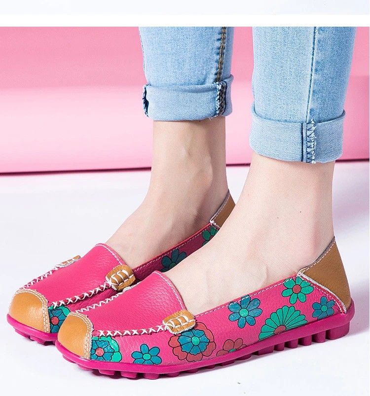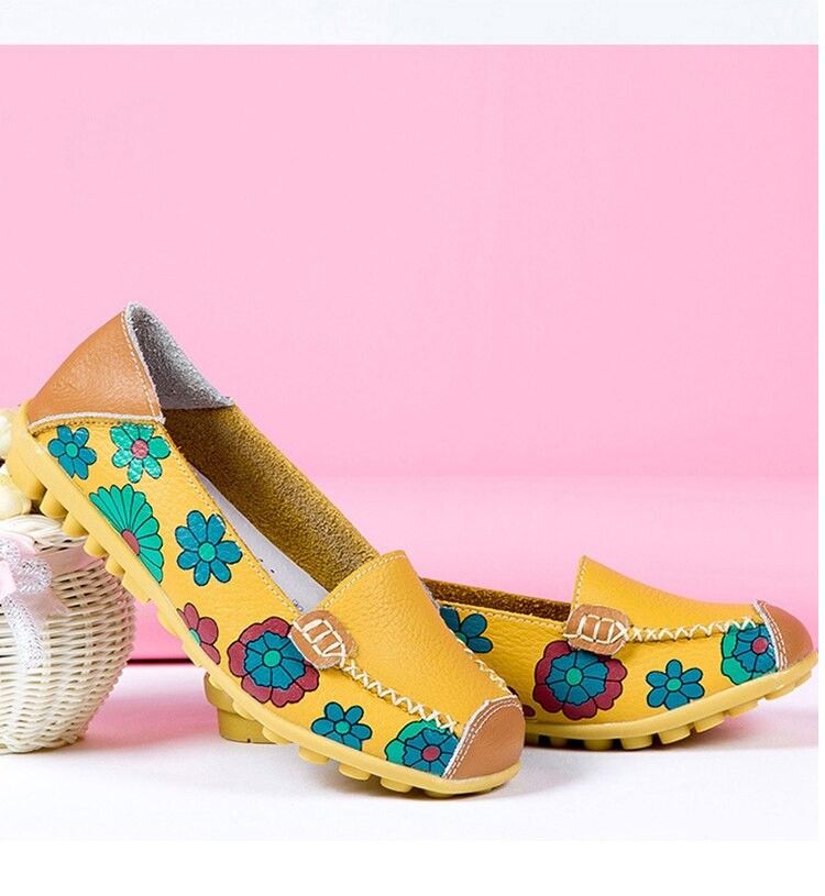 Latest Fashion Women Flats Genuine Leather Shoes Women Slip On Ballet Women Flats Print Woman Shoes Moccasins Loafers Shoes Flower