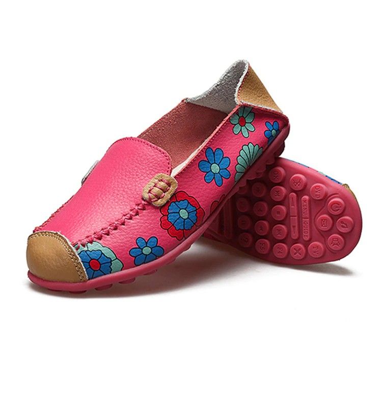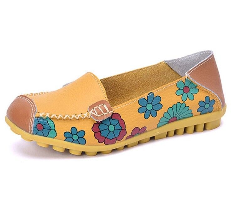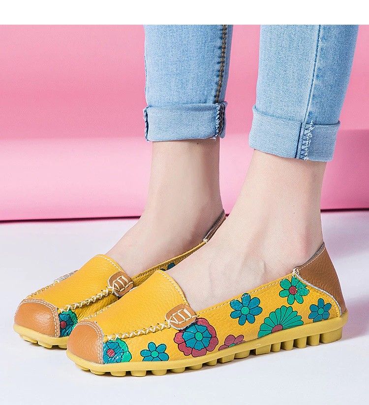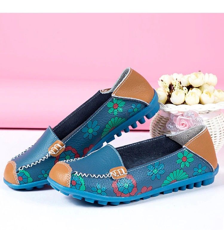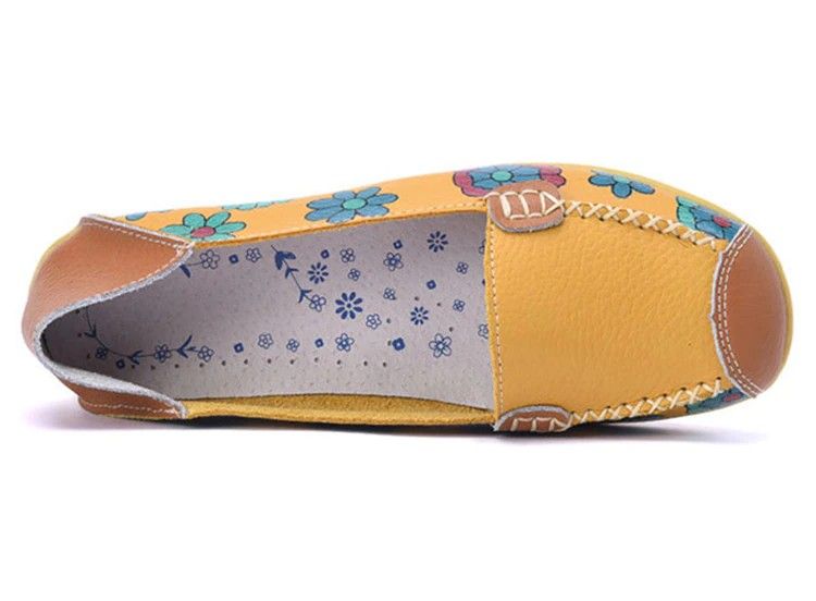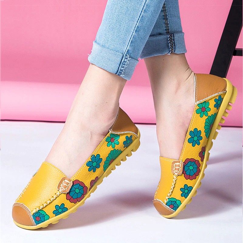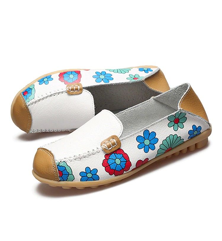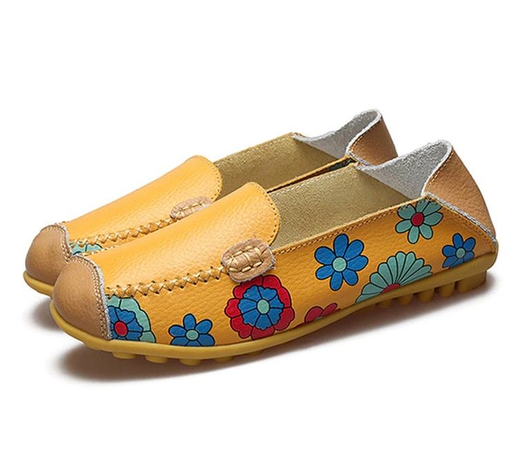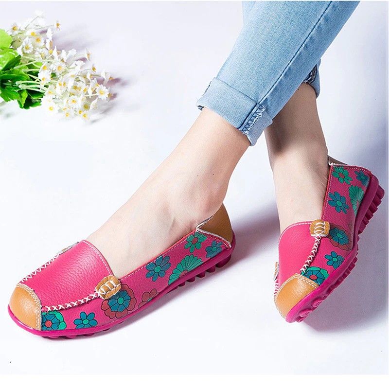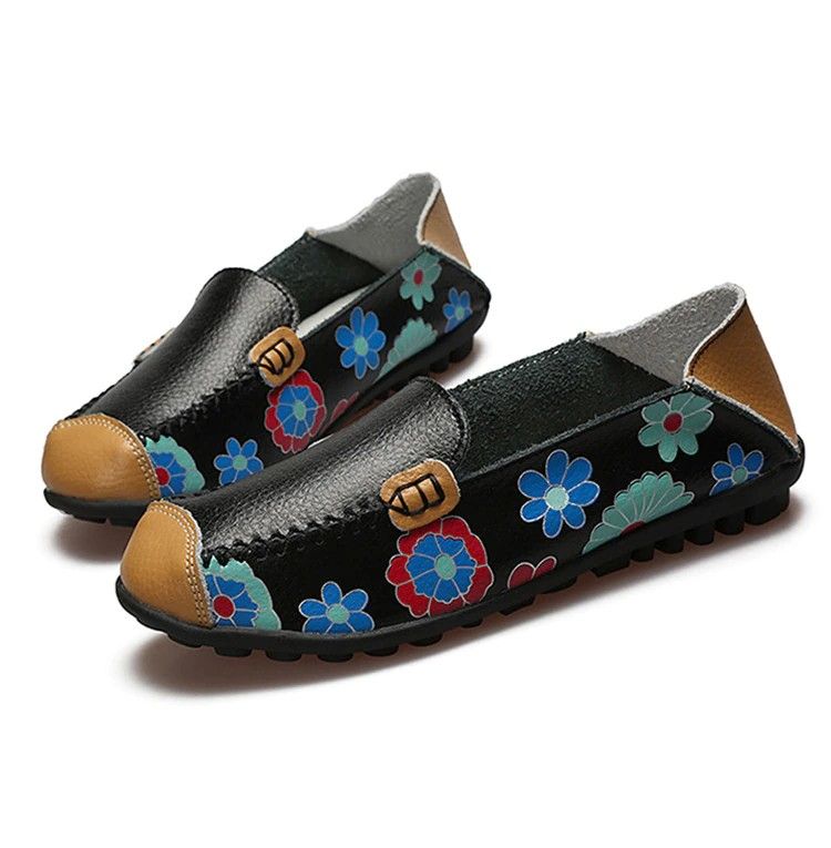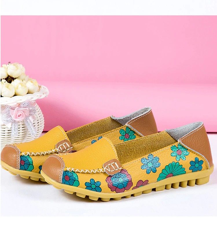 Latest Fashion Women Flats Genuine Leather Shoes Women Slip On Ballet Women Flats Print Woman Shoes Moccasins Loafers Shoes Flower