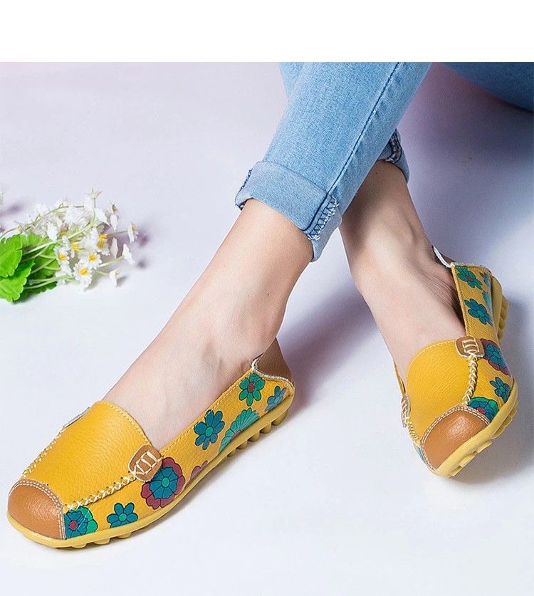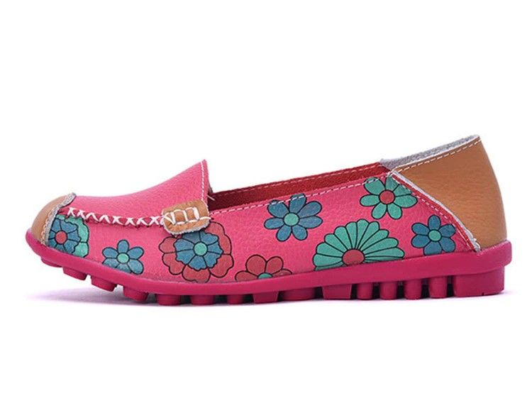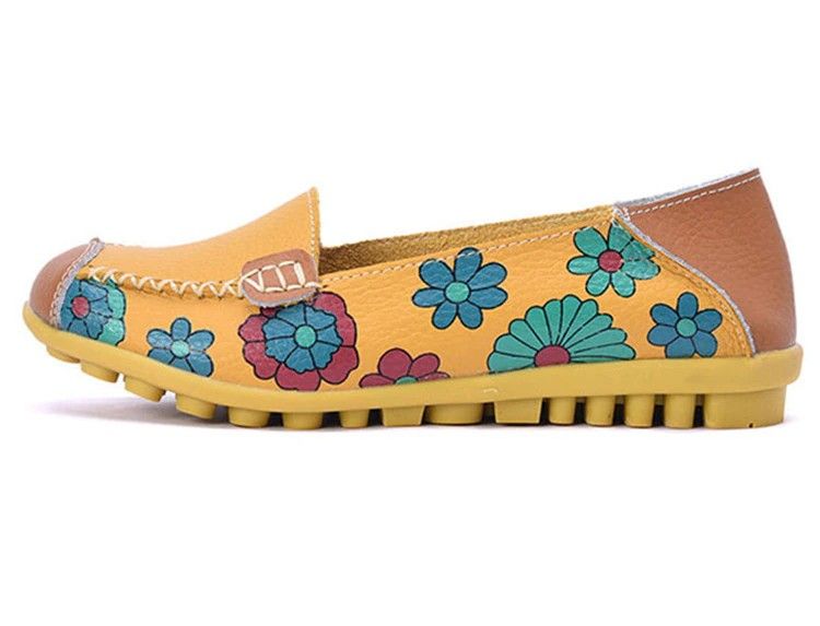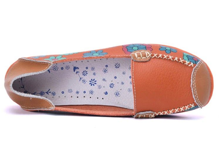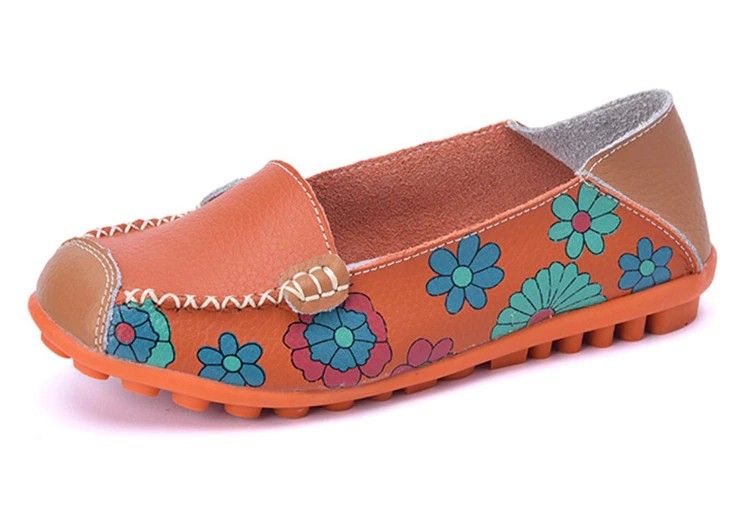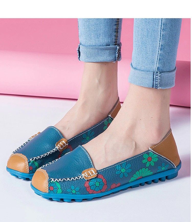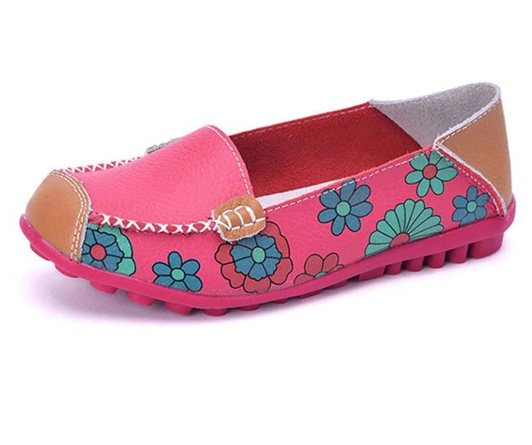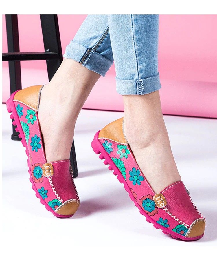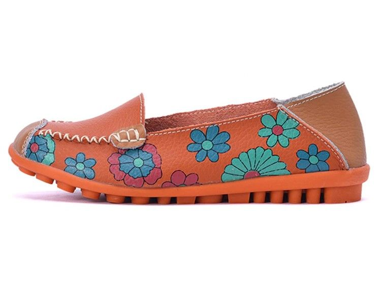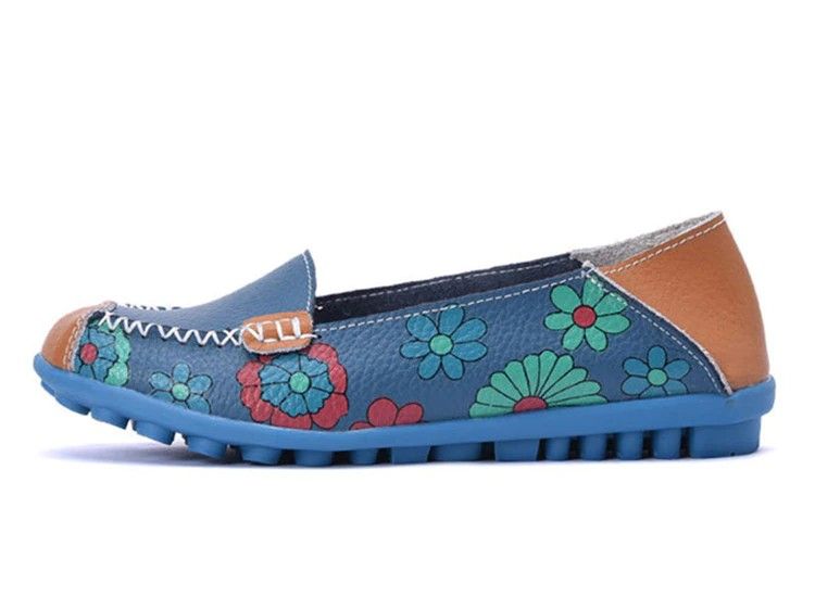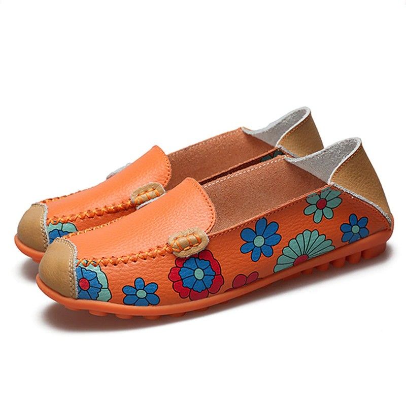 Latest Fashion Women Flats Genuine Leather Shoes Women Slip On Ballet Women Flats Print Woman Shoes Moccasins Loafers Shoes Flower