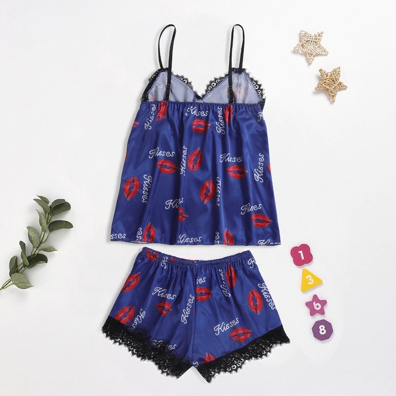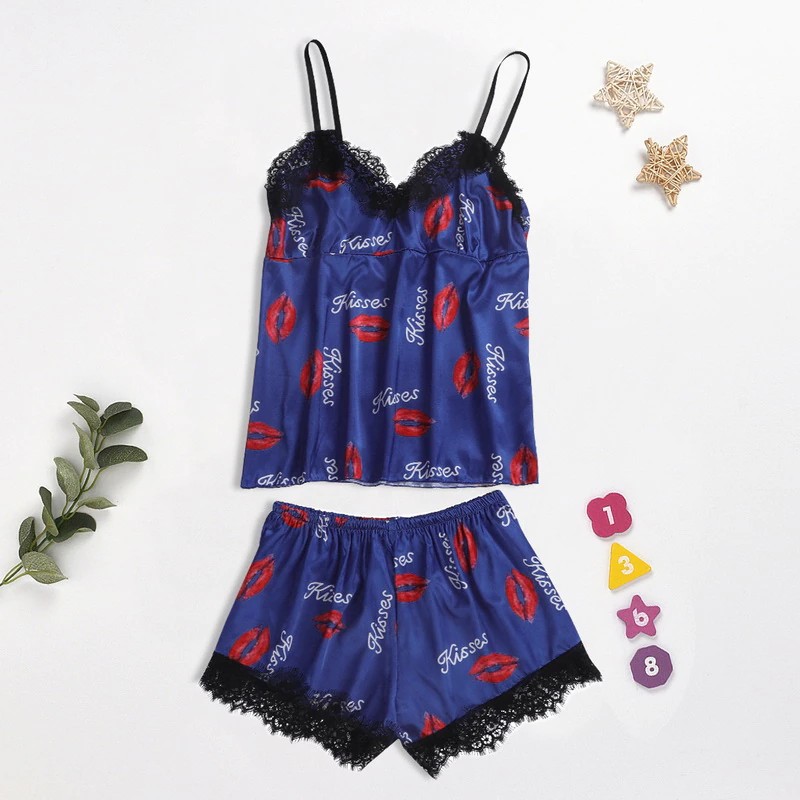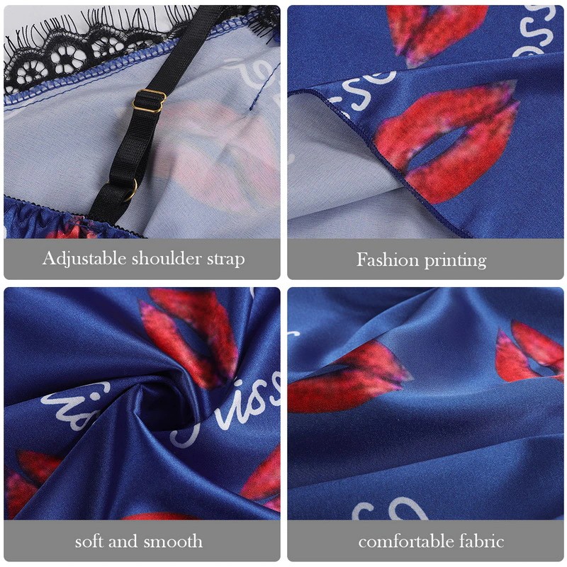 2022 Pijama estampado de puntos de encaje conjuntos de Pijama de mujer con cuello en V elástico satén lencería Sexy ropa de dormir pijamas ropa de dormir ropa de casa