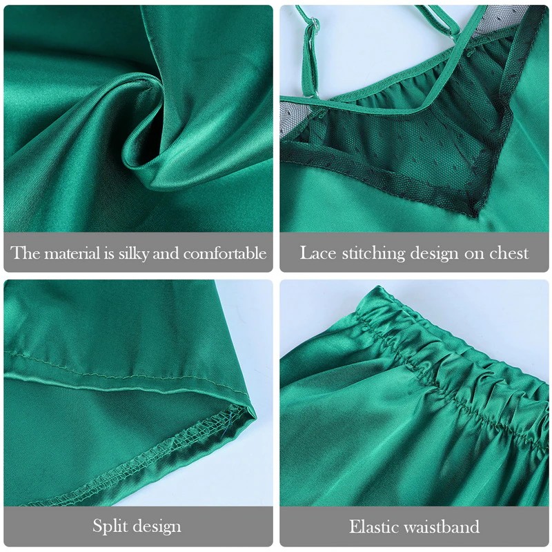 Conjunto De Pijama De Encaje Con Estampado Lunares Para Mujer, Lencería Sexy Satén Elástica Con Cuello En V, Ropa De Dormir Para El Hogar, Más reciente