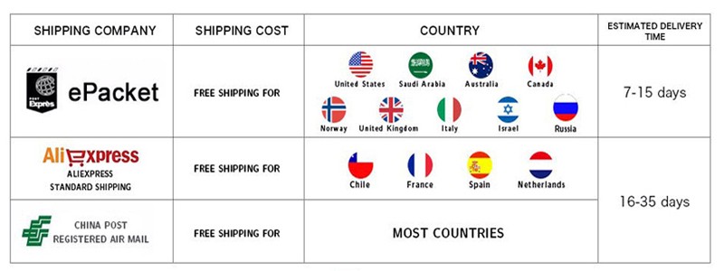 1La confirmación temprana del Comprador será apreciada altamente después de recibir los artículos.