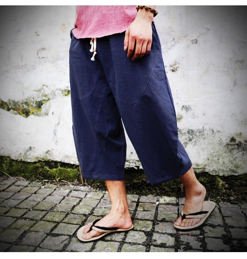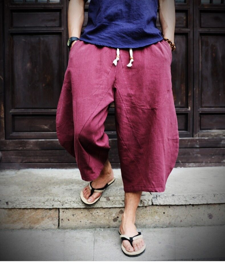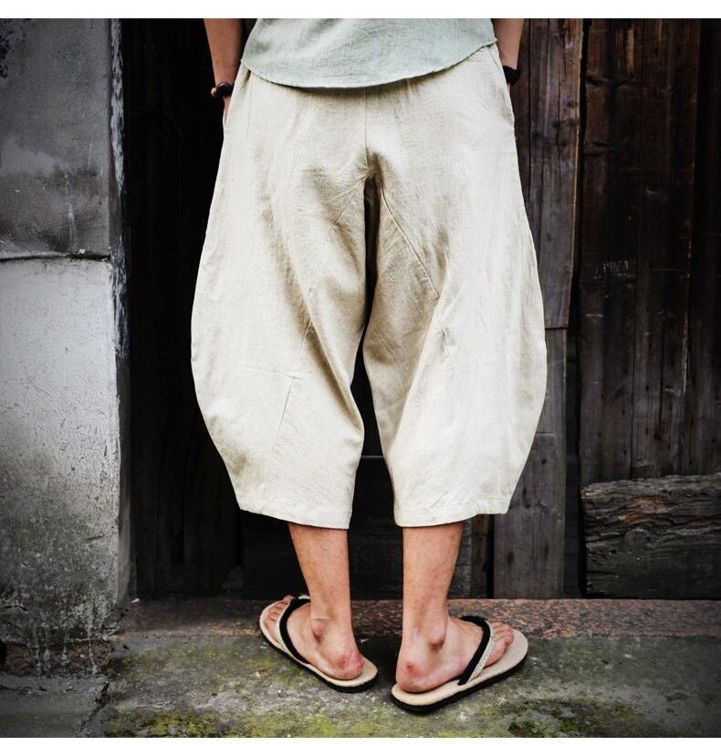 En sonuncu Erkekler Pamuk Keten Baggy Geniş Bacak Pantolon Erkekler Asılı Kasık Hip Hop Olgunlaşanlar Pantolon Erkek Buzağı Uzunlukta Çapraz Pantolon