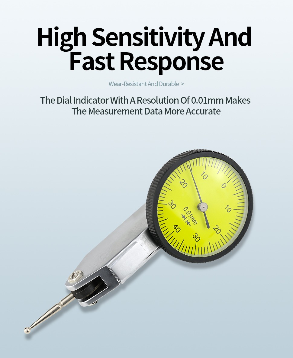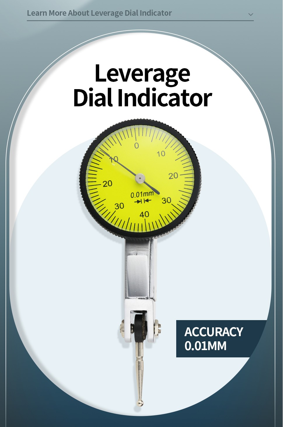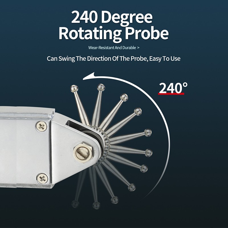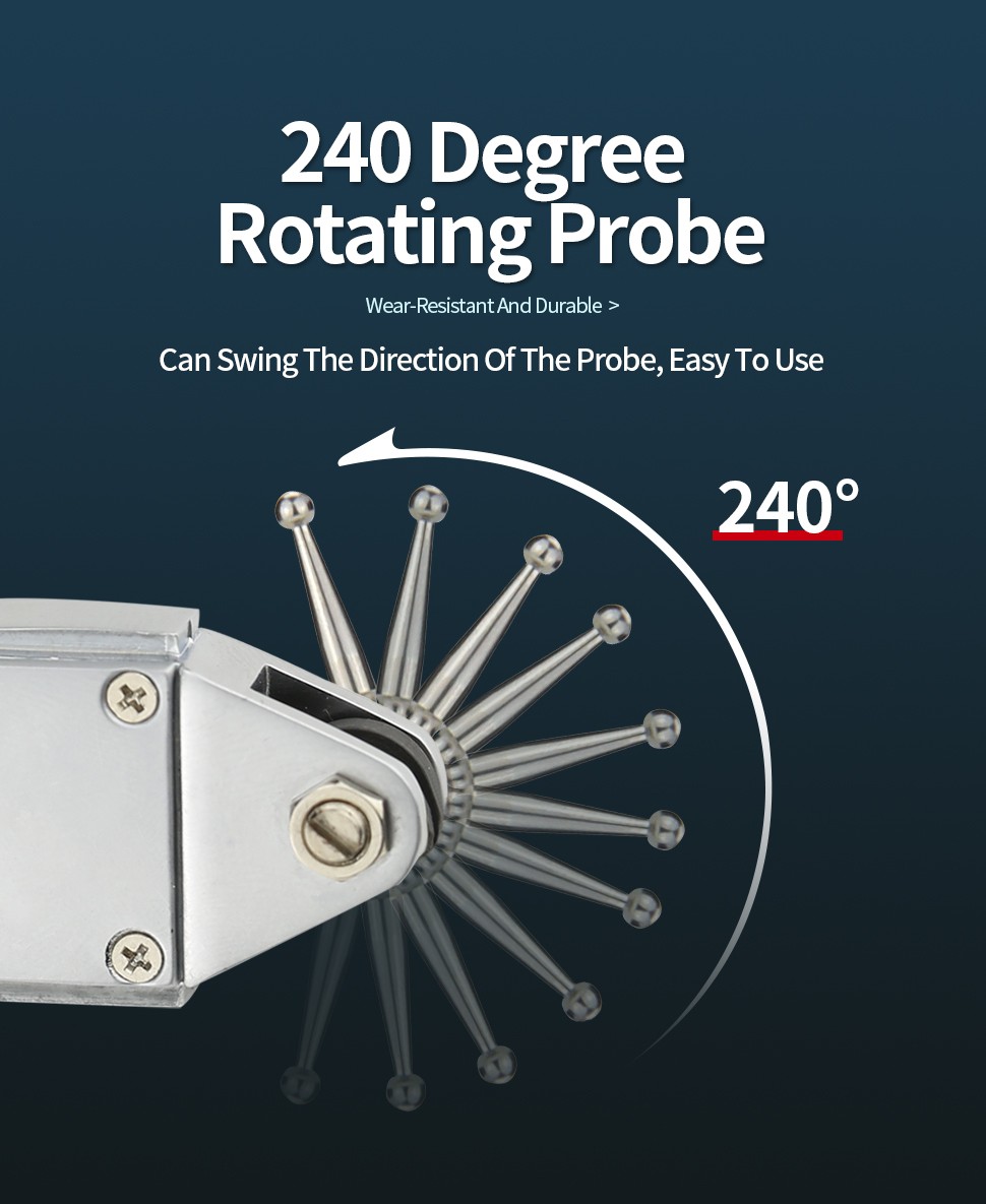 Features: The measuring probe of the lever dial indicator can be adjusted 240° at will. The measuring probe is made of alloy tungsten steel. Accessories combination: shaft sleeve φ6mm, φ8mm.