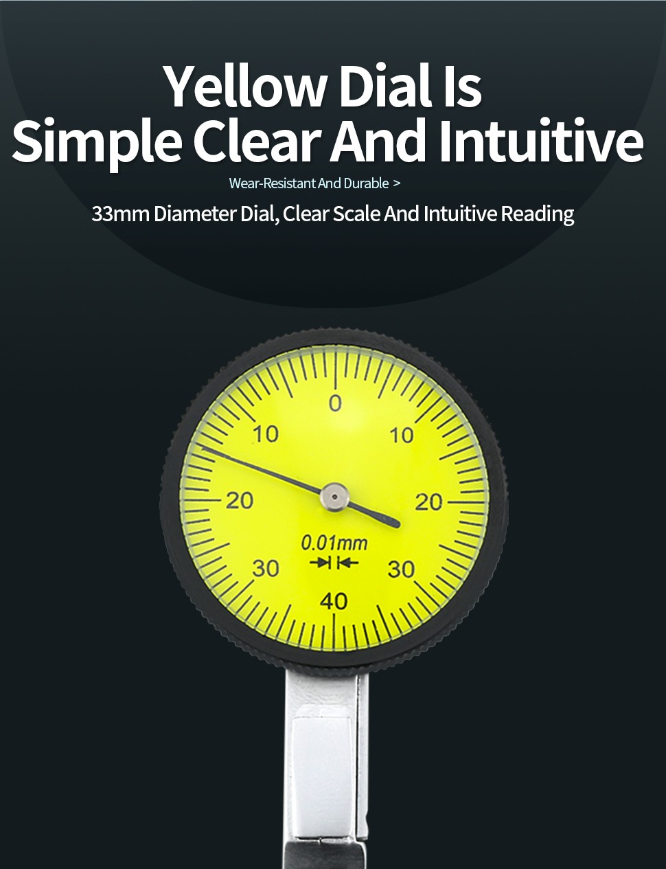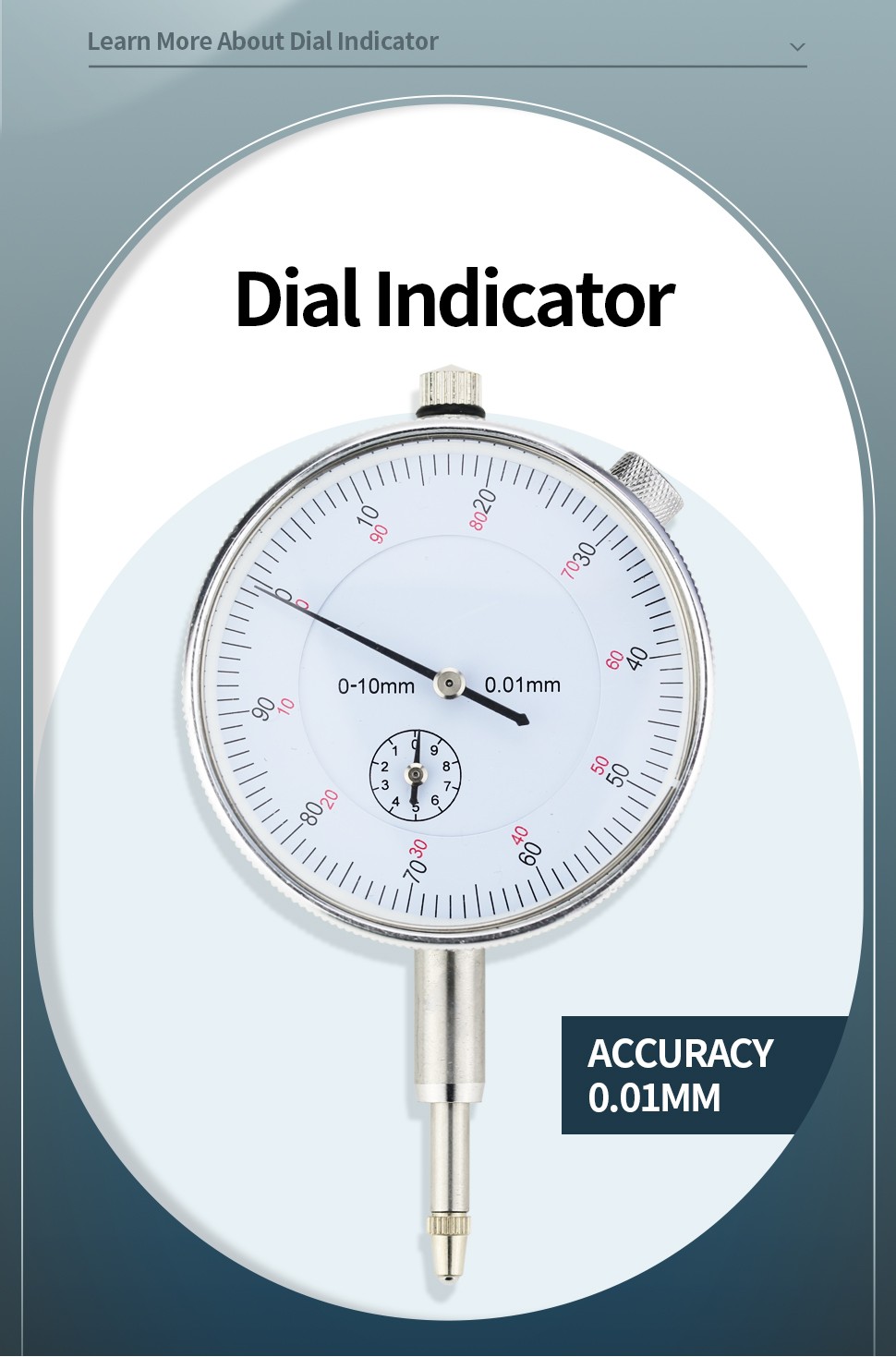 Features: The accuracy of the dial indicator is 0.01mm, which can more accurately measure the concentricity of the main body. The scale is clear, and the reading is intuitive and convenient. High-quality stainless steel measuring probe, rust-proof and wear-resistant.