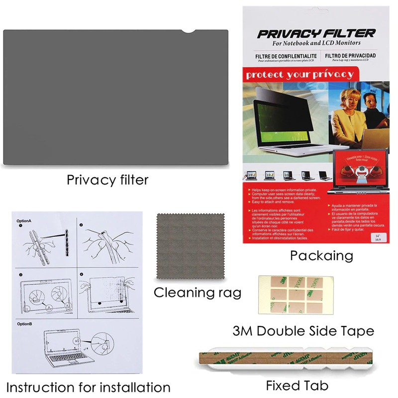 1*Privacy filter 1*Instruction paper 1*Sticker 1*Transparent plastic hasp