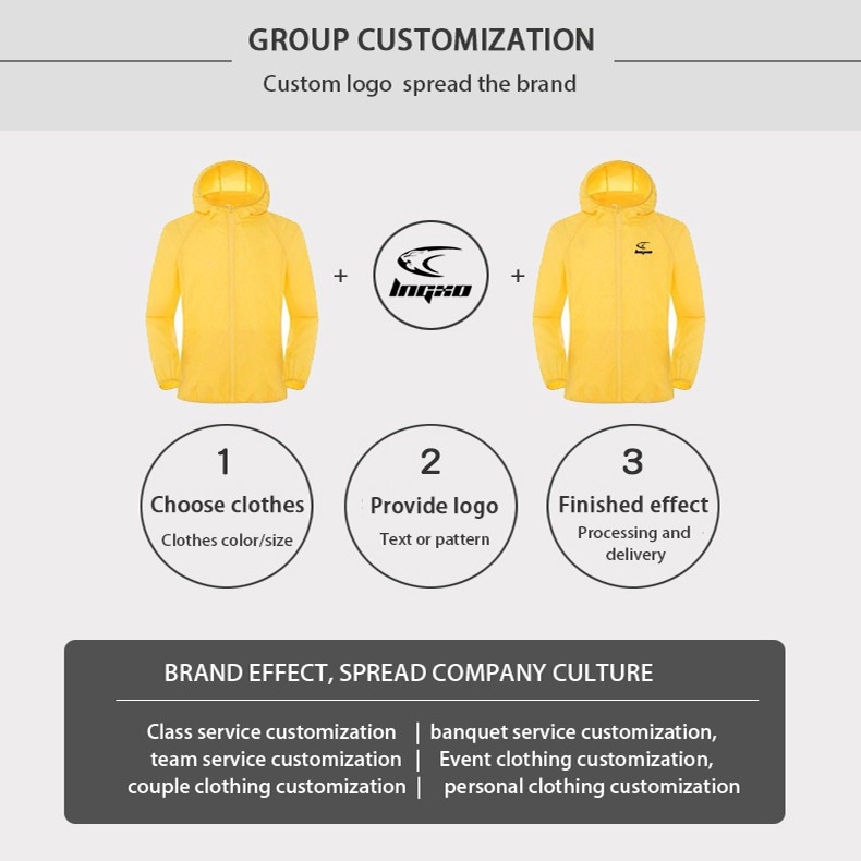 If you want to add your logo on the jacket, please contact us, we have a variety of printing and sewing methods, and you can add your logo on your clothes.