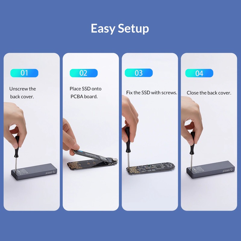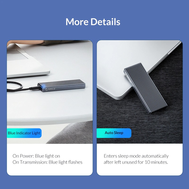 -PLUG and PLAY:ORICO NVME M.2 SSD Adapter SUPPORT Hot-swappable, Plug and Play, No Driver required.