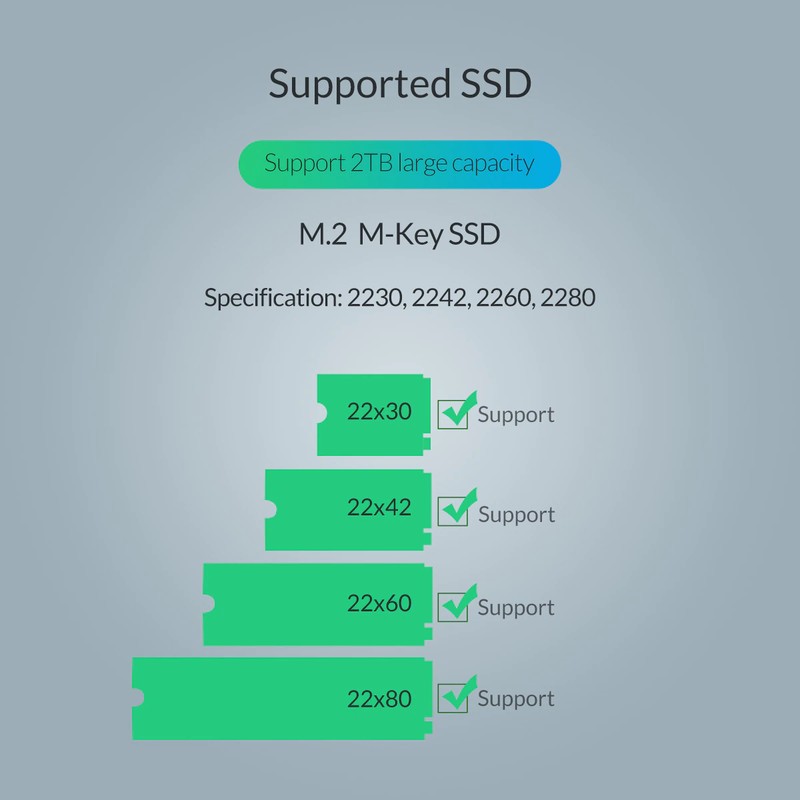 -WIDE COMPATIBILITY:Support M.2 SSD with size of 2230/2242/2260/2280mm up to 2TB