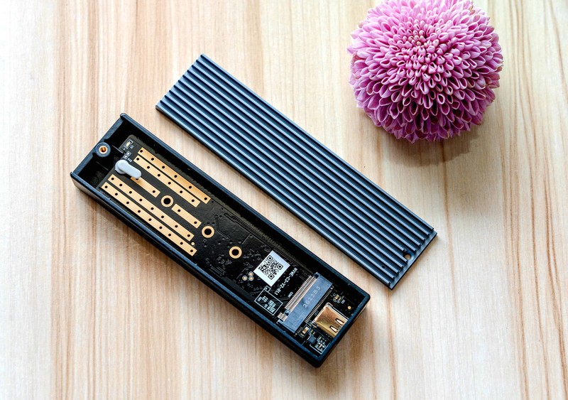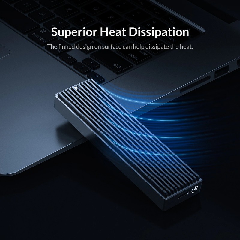 -EXCELLENT HEAT DISSIPATION: The copper bars with holes on the PCBA board and the thermal pad attached to the m.2 external enclosure, with the aluminum alloy case can ensure a perfect cooling performance for the solid-state Drive.