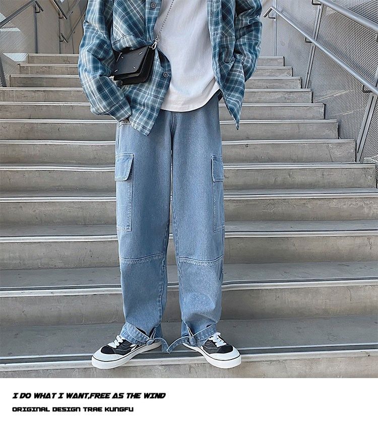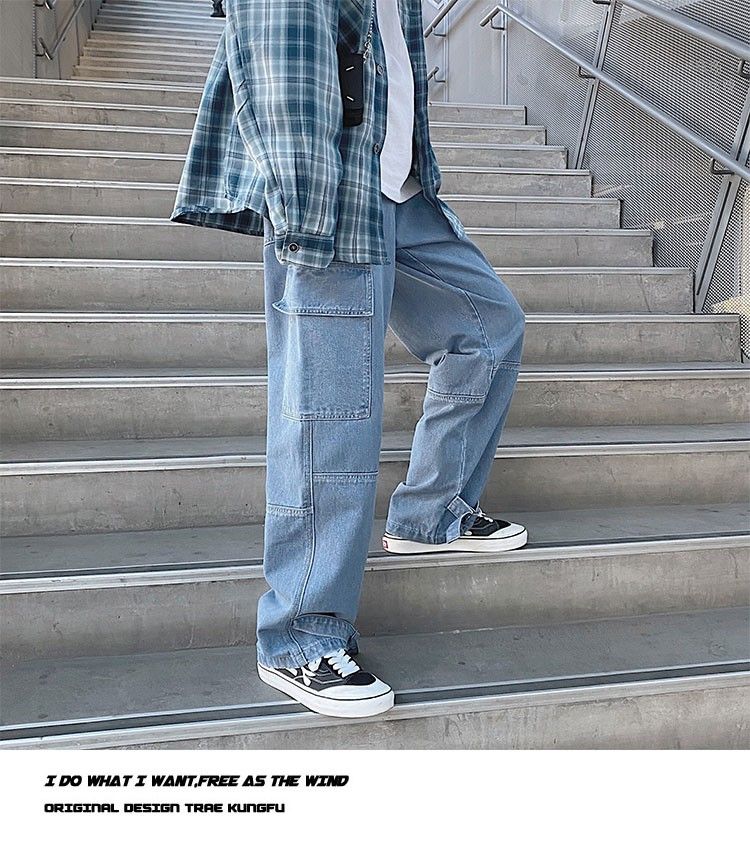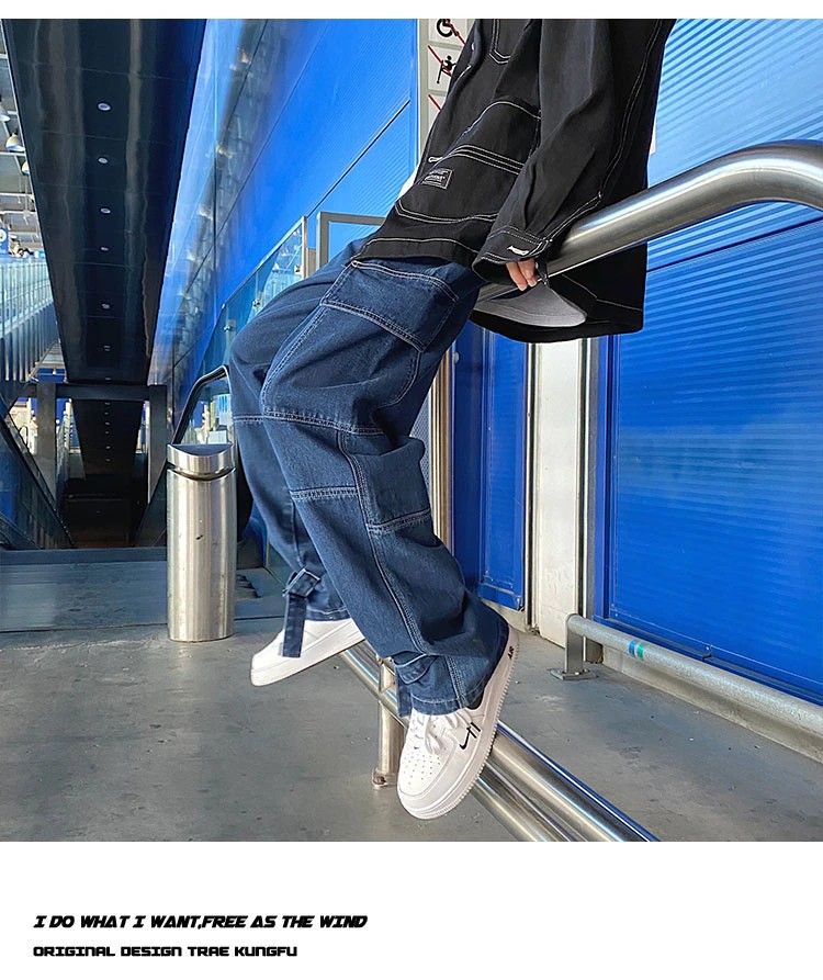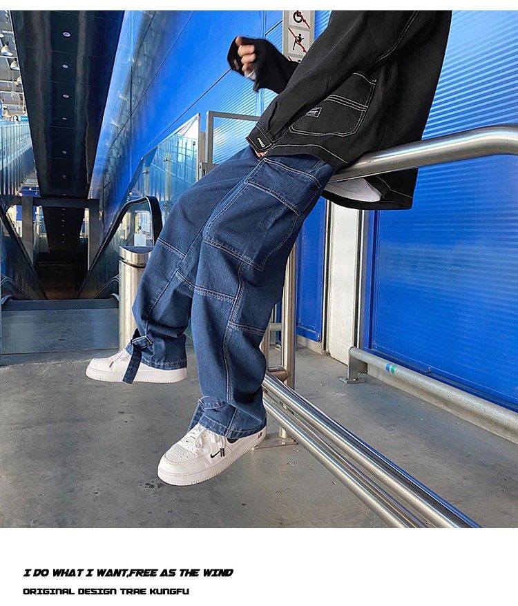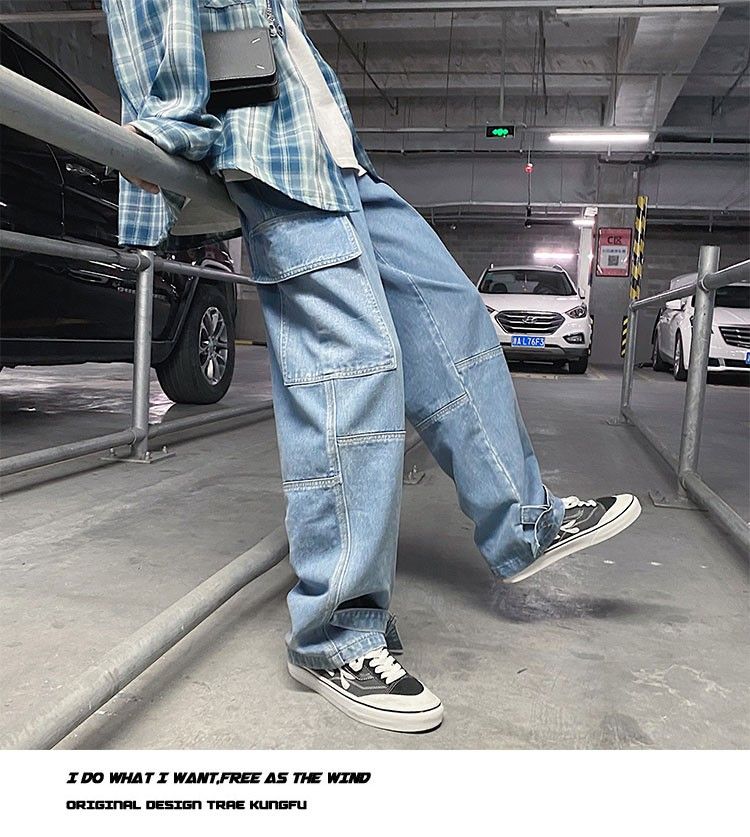 Men Jeans Wide Leg Denim Pant Loose Straight Baggy Men'S Jeans Streetwear Skateboard Pants Hip Hop Neutral Trousers Cargo Jeans