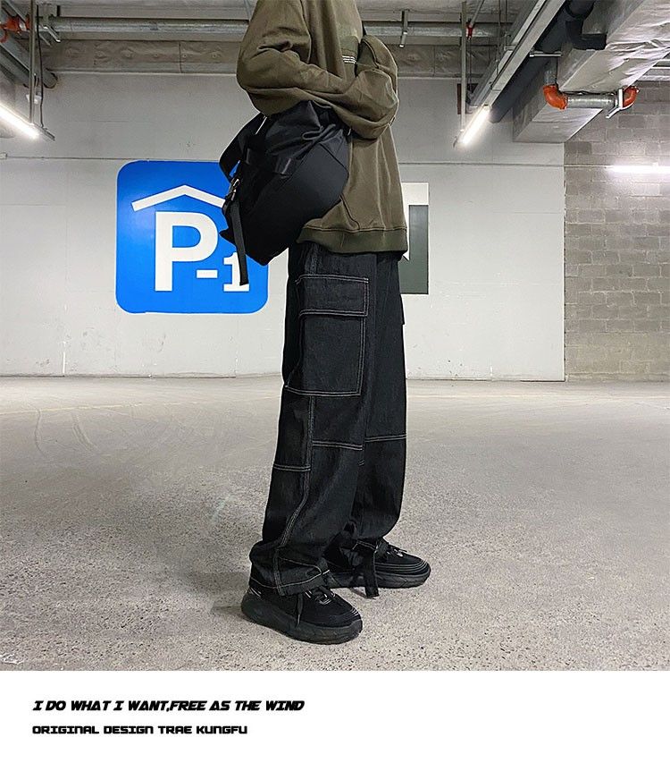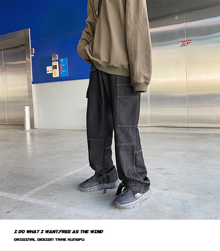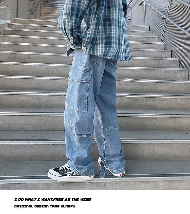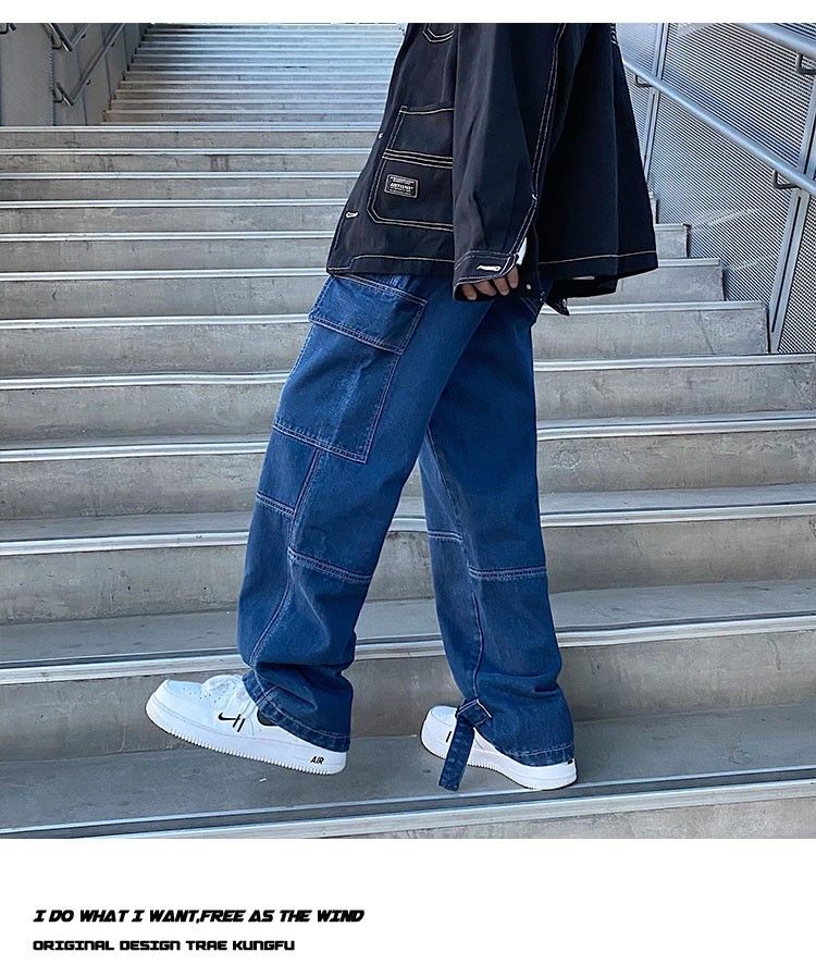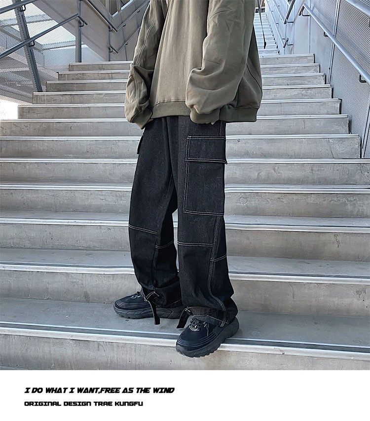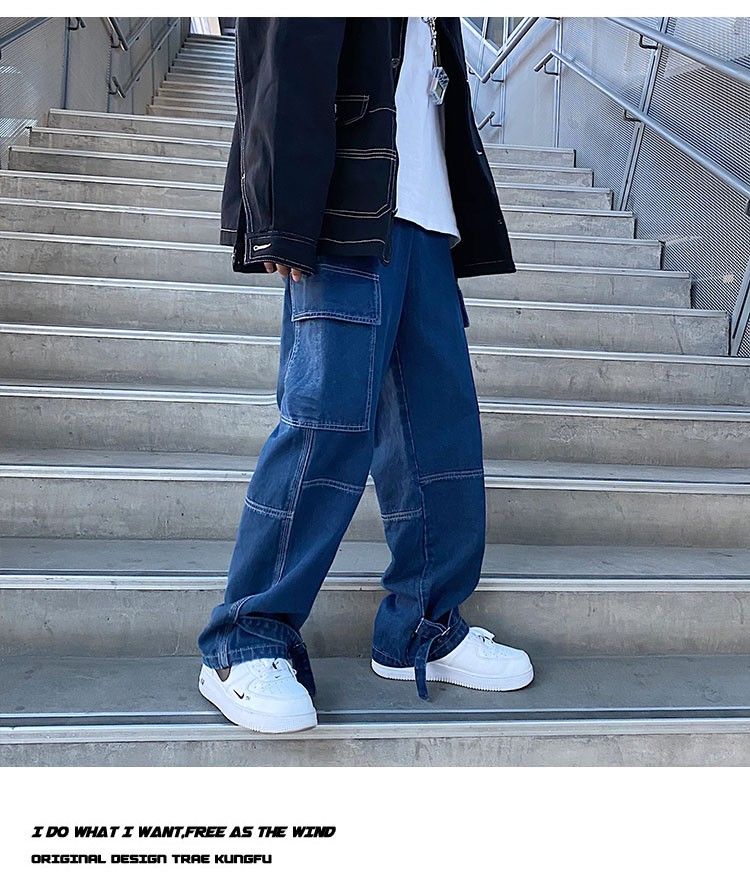 Fashion trend street cargo pants.Unisex jeans for men and women