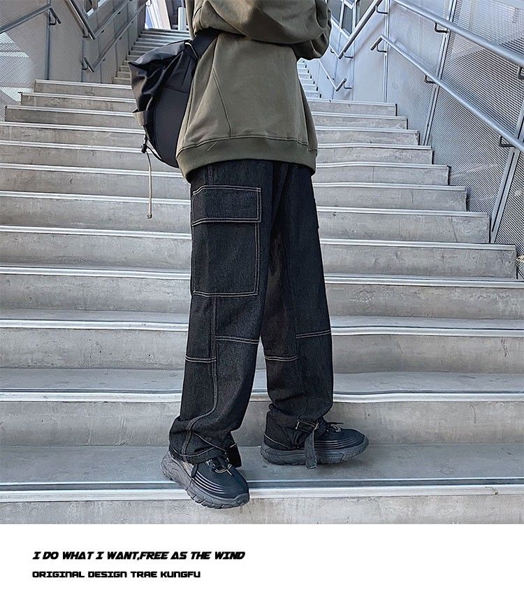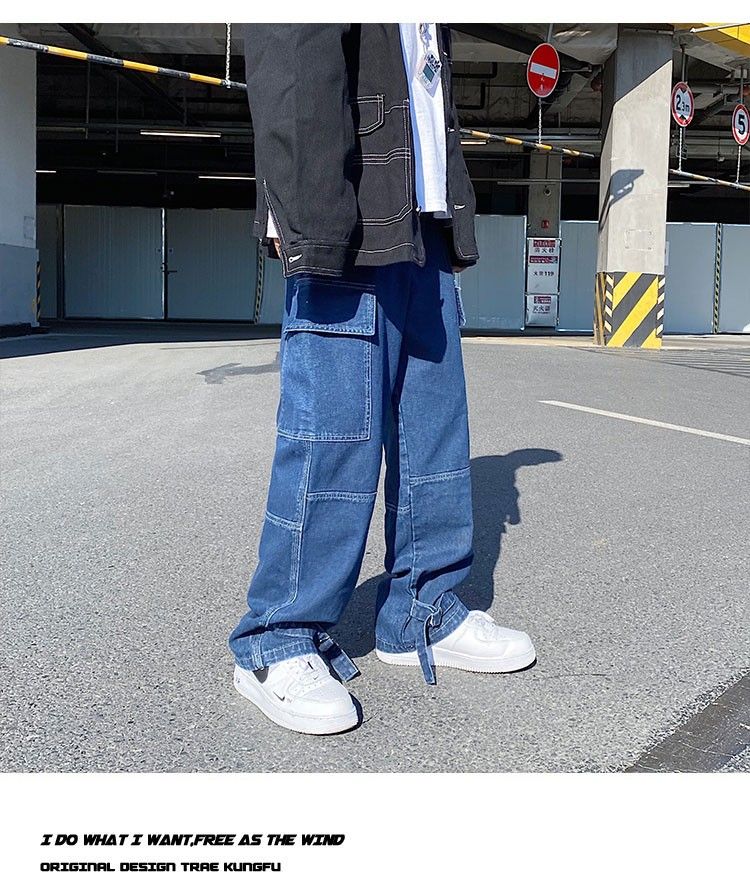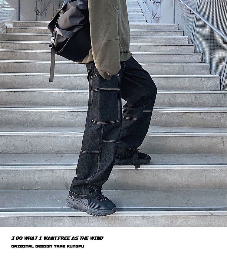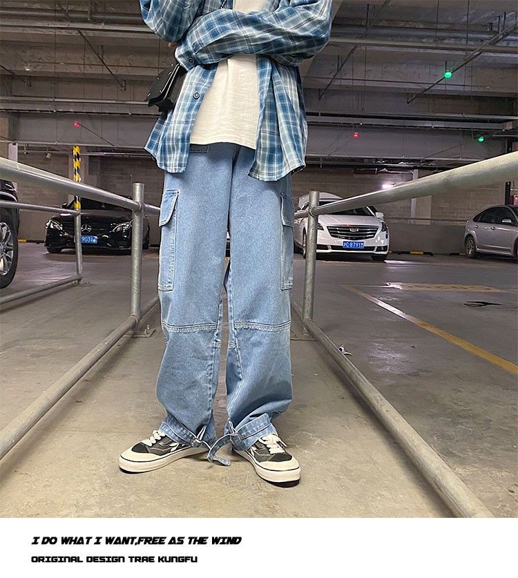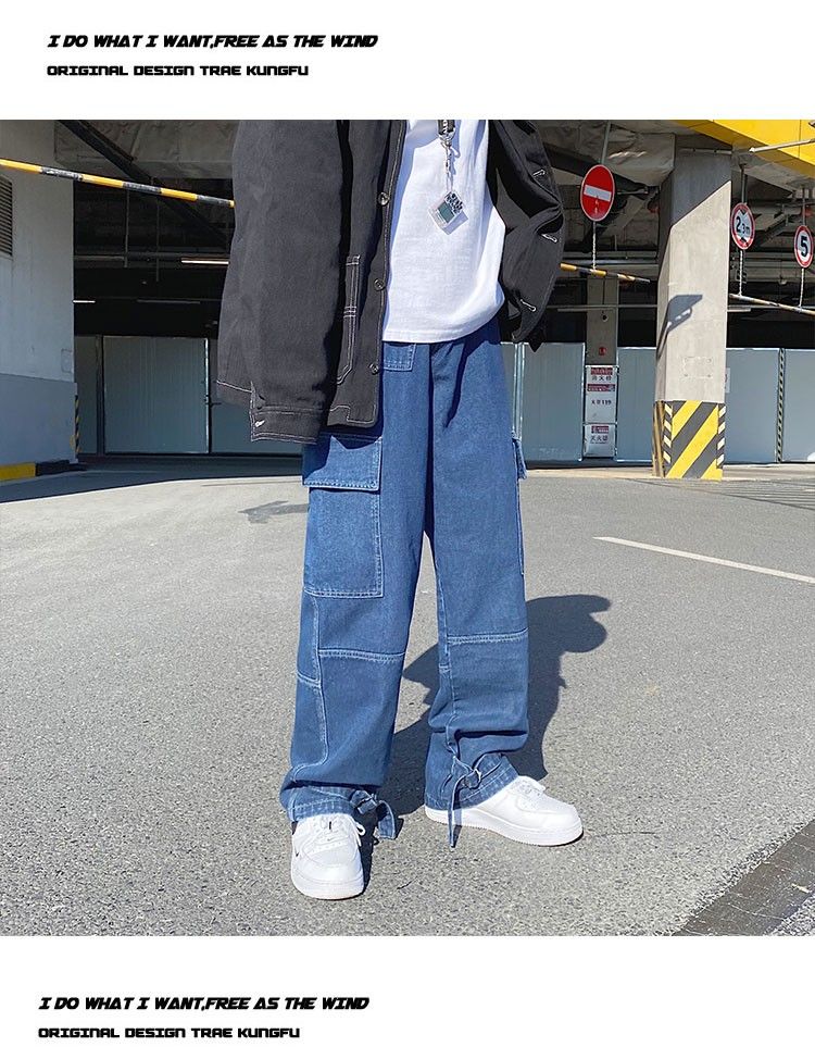 Fashion trend street cargo pants.Unisex jeans for men and women