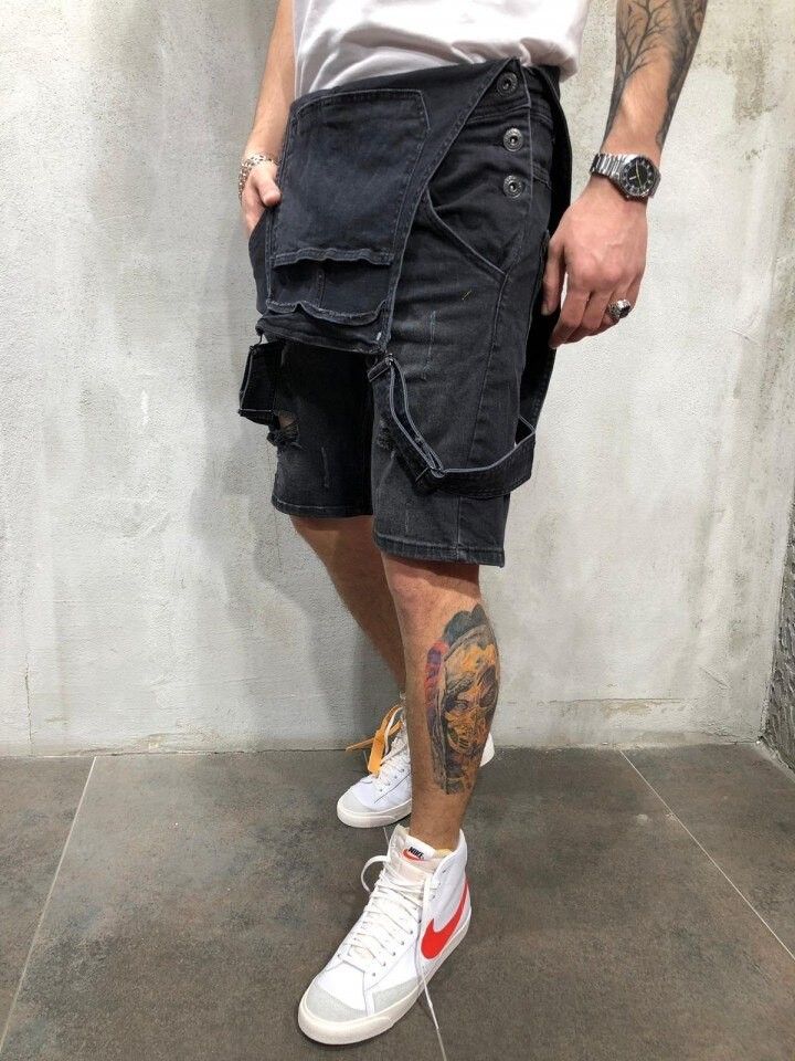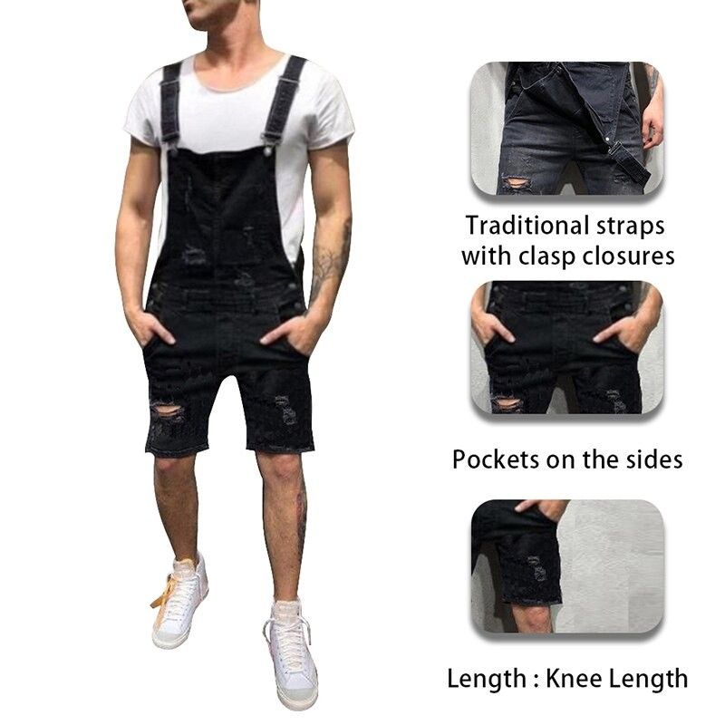Men'S Overalls Baggy Jeans Shorts Jumpsuits Men Shorts Summer Clothing Street Distressed Denim Bib Overalls Man Pants Plus Size