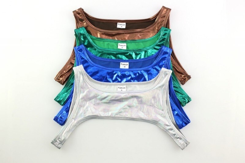 Men Tanks Pu Leather Tops Gay Sexy Stage Dance Showwear Male Vest Tank(Only Top)
