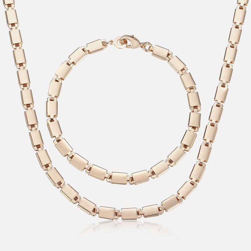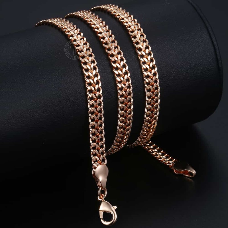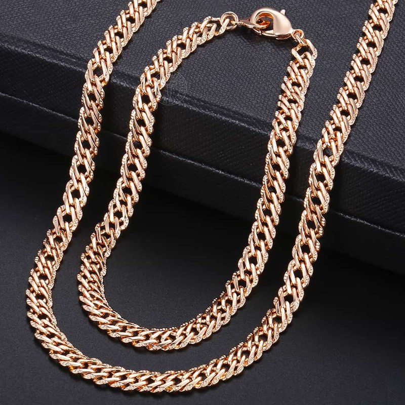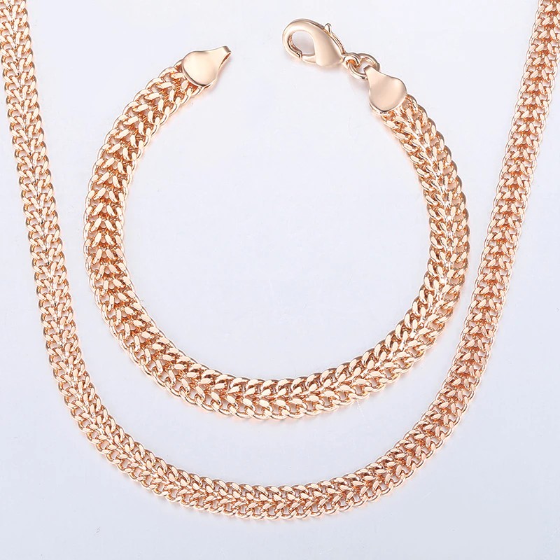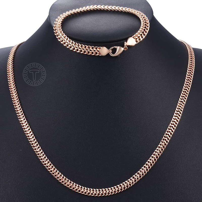 Men Women'S Jewelry Sets 585 Rose Gold Bracelet Necklace Set Double Curb Cuban Weaving Bismark Chain Newest Wedding Gift Kcs04