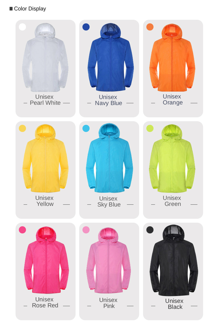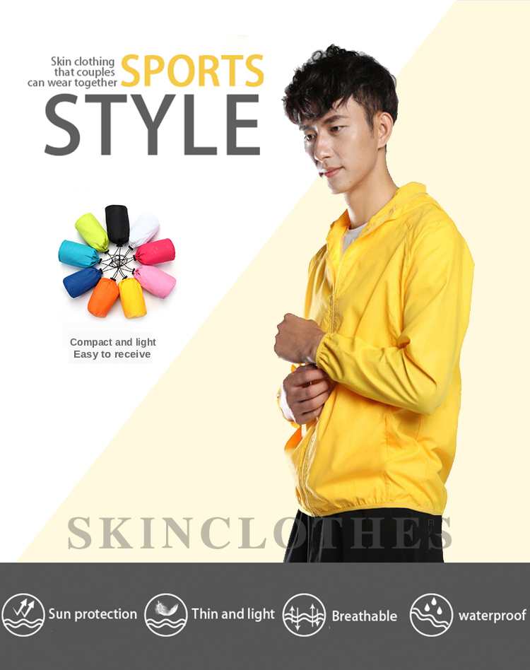 Lightweight, soft and sunscreen skin jacket with storage bag, compact and easy to carry, 11 colors to choose from. Suitable for outdoor sports such as hiking, camping, running, fishing, and cycling.