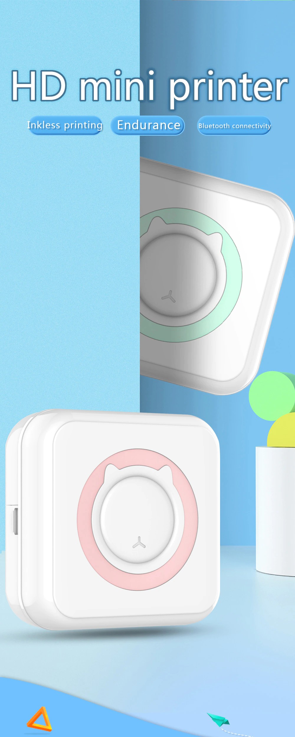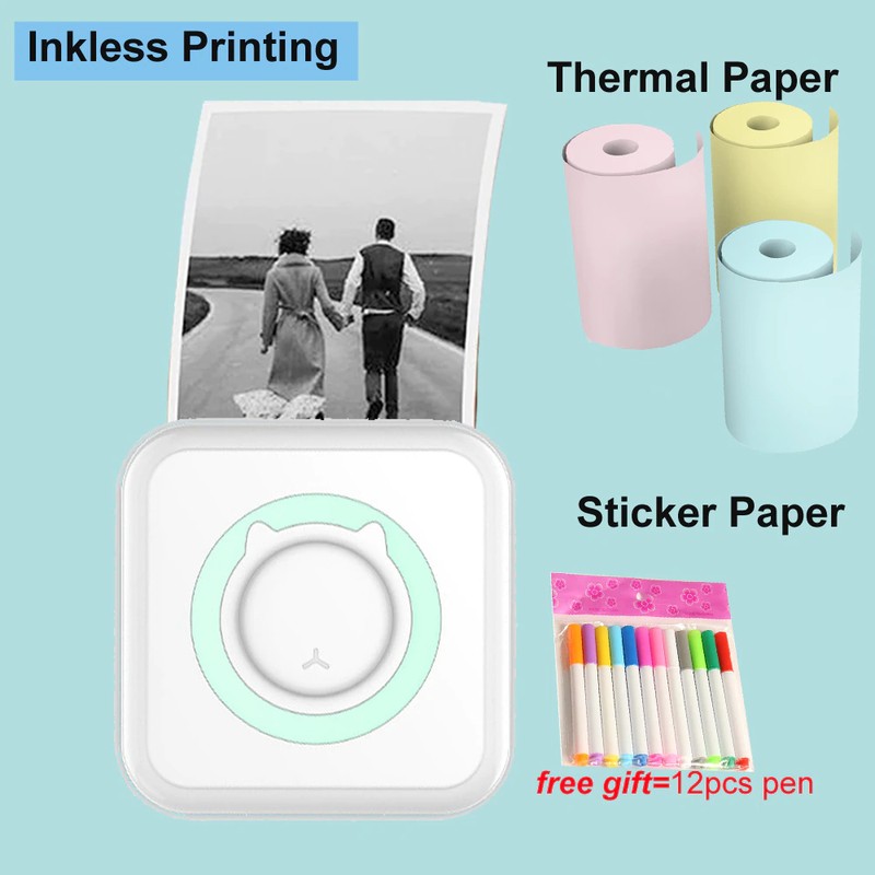 Mini Portable Thermal Printer Paper Photo Pocket Thermal Printer Printing Wireless Bt Connect Printers 200Dpi Photo Lable