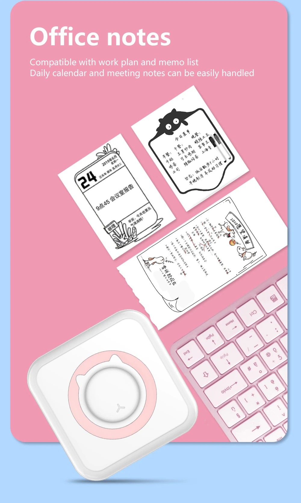 Support multiple functions, it can print photos, labels, messages, lists, records, QR Code, web printing and so on. The APP offers a variety of fonts and themes to make your photos stylish.