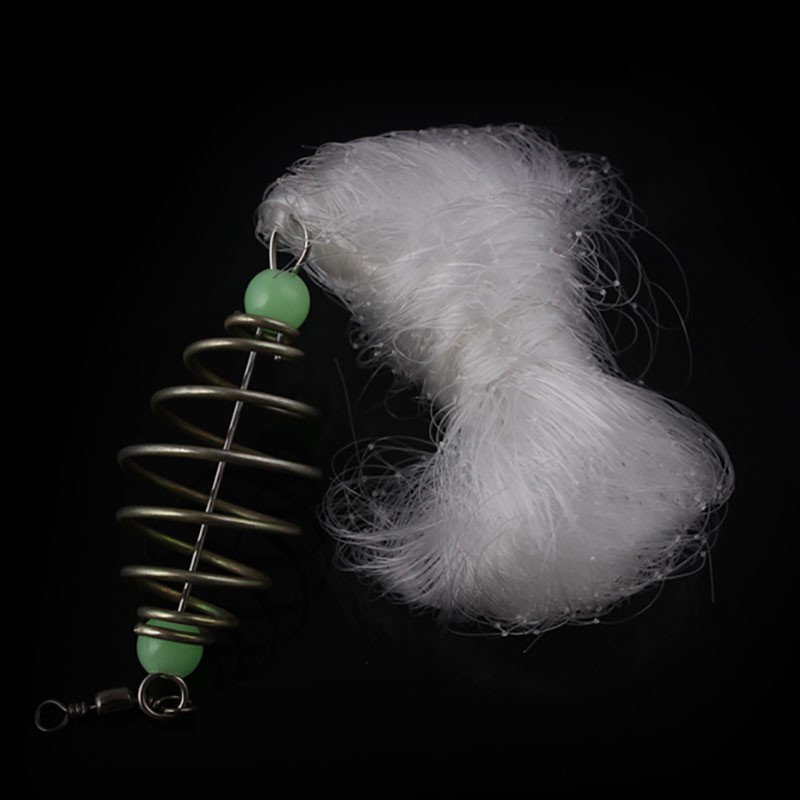 theory:The sinker weight will sink to the bottom with the bait, and the net will float on top of the bait (spring ring) due to buoyancy. Passing fish will be caught by the net.