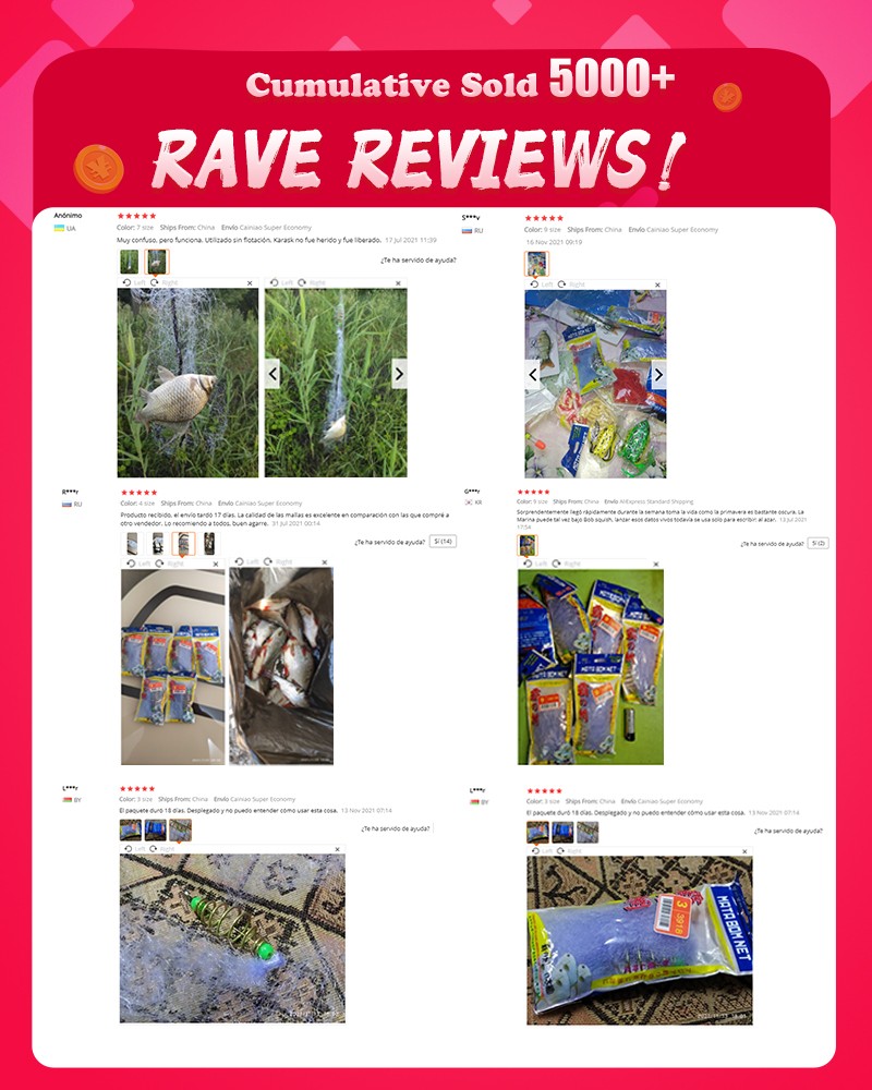 The principle is the same as gill net. put the bait in the spring ring, Place the net where there are lots of fish and keep it stillness , the buoyancy will pull the net open. The nebulized bait attracts fish to feed, and the net will catche them.