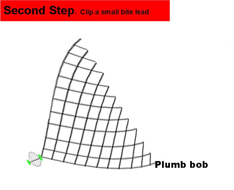 note: Make sure the float is at least one meter away from the sinker, otherwise the net won't sink completely and won't open. This is important.