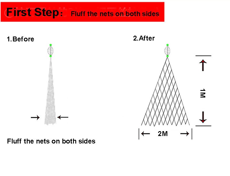 1. Please open the net as wide as possible by your hand befor throw in the water