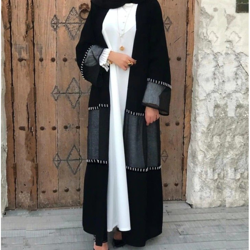 Muslim Abaya Tulle Stitching Cardigan Robe Worship Service Islamic Prayer Dress