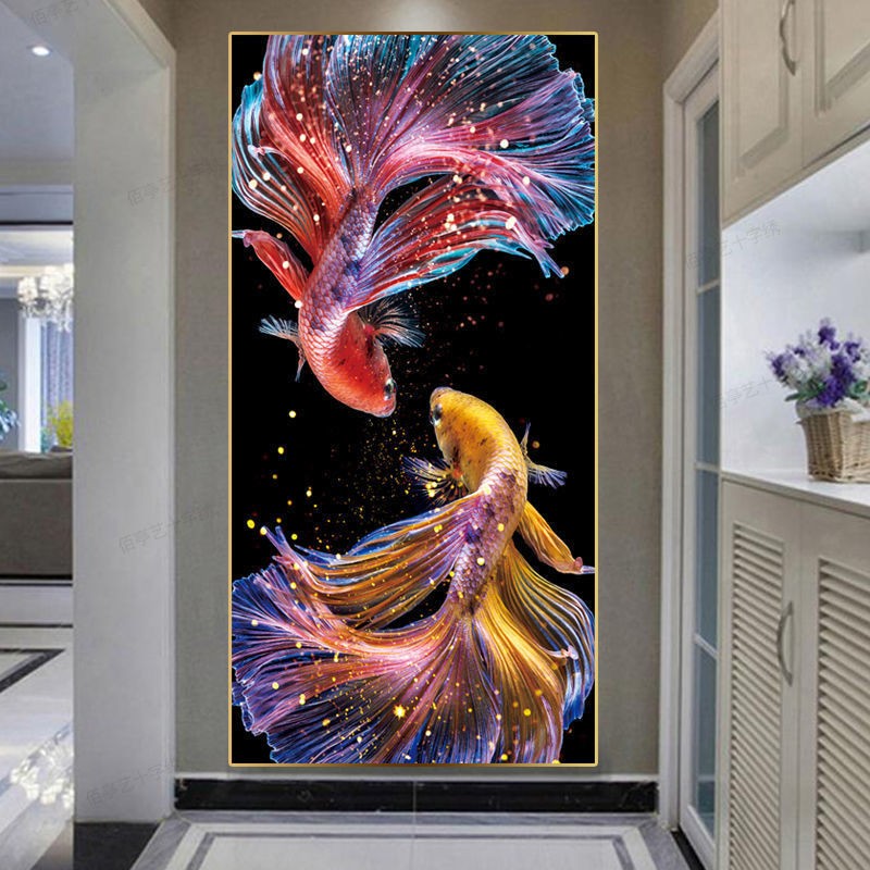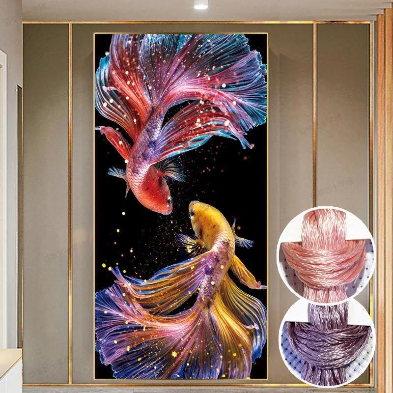 Needlework DIY Fish Printed Canvas Goldfish Cross Stitch Sets For Embroidery Koi 11CT Full Embroidery Cross-Stitching Decoration