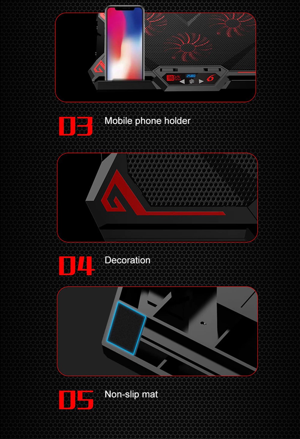 Característica 5: Soporte de enfriamiento portátil, almohadilla más fría, Portatil base