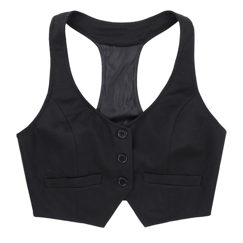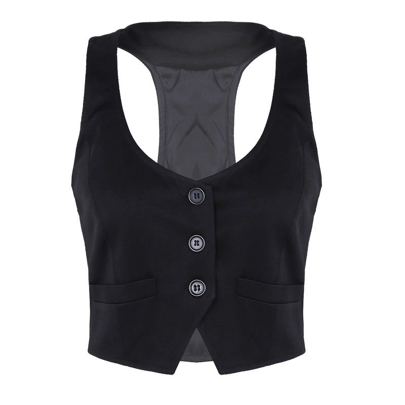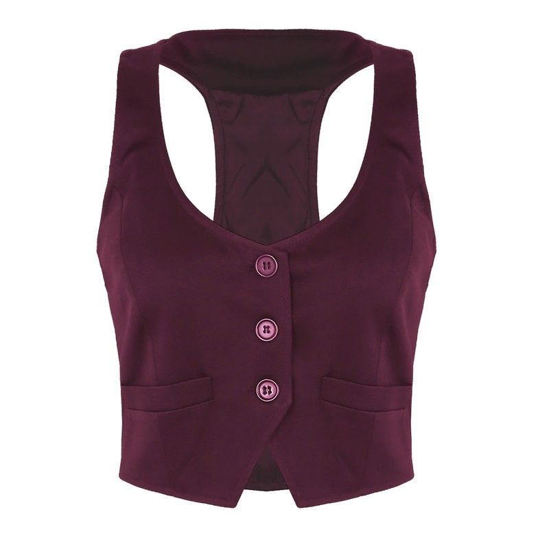 Women's Slim Fit Sleeveless Vest Waistcoat, Solid Pattern, Racer Back.
