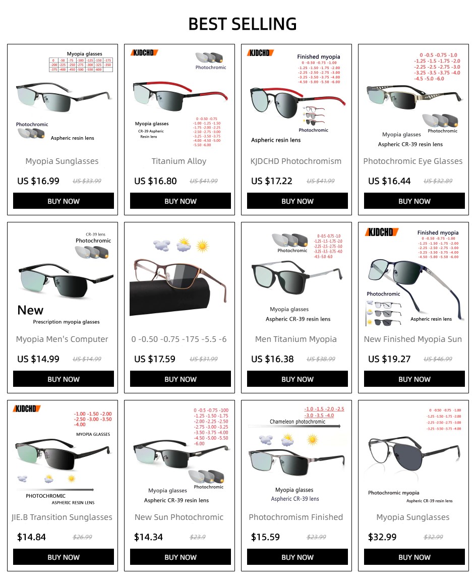 New Sun Myopia Eyeglasses Optical Men Student Finished Myopia Eyewear Prescription Glasses Frame Half Rim -1.0 -4.0