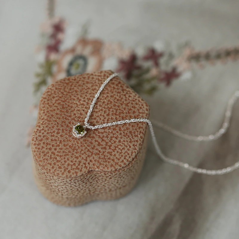 2021 Jewelry 925 Sterling Silver Sparkling Clavicle Chain Choker Necklace Green Diamond Gypsophila Pendant Necklace for Women